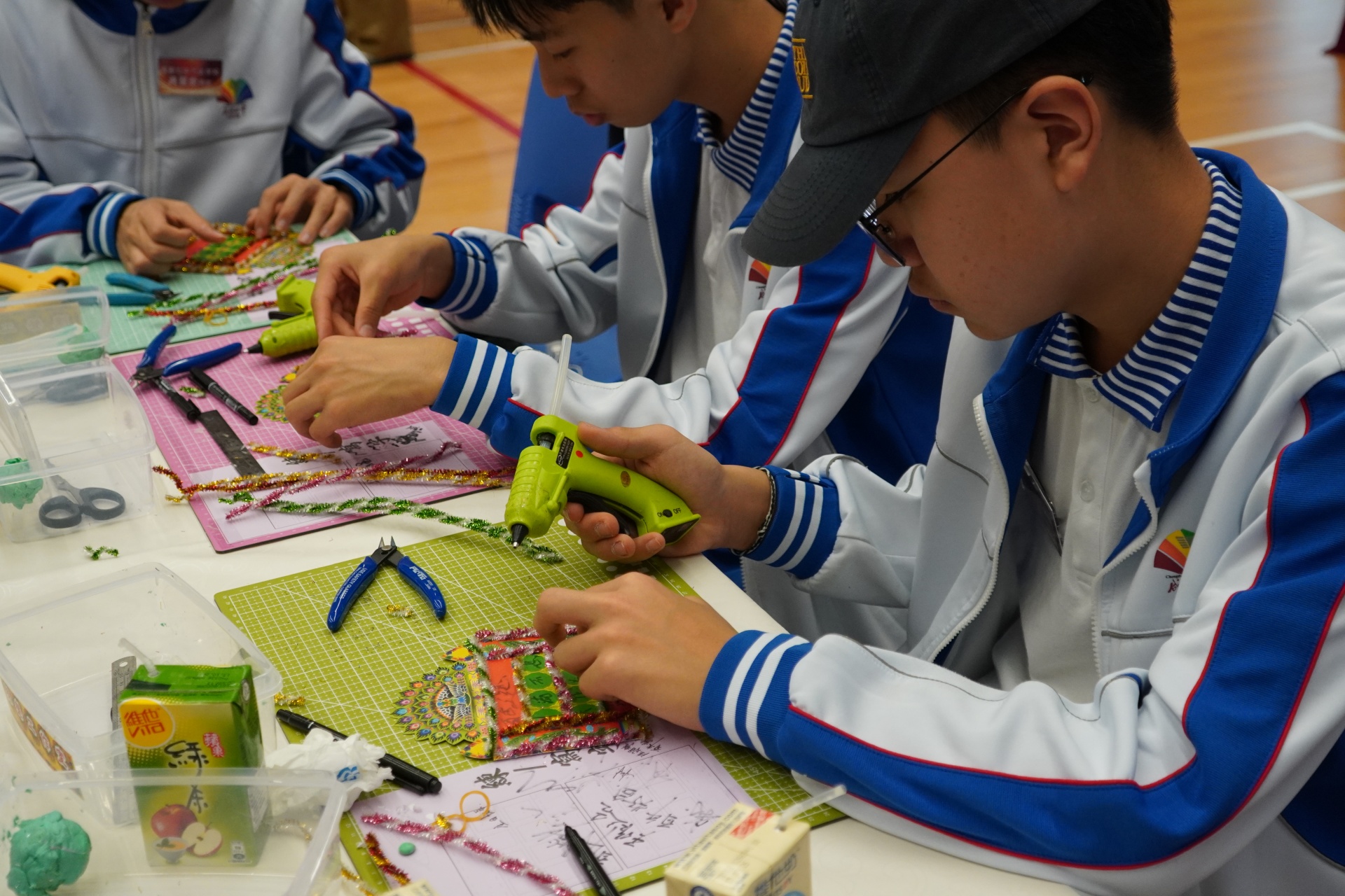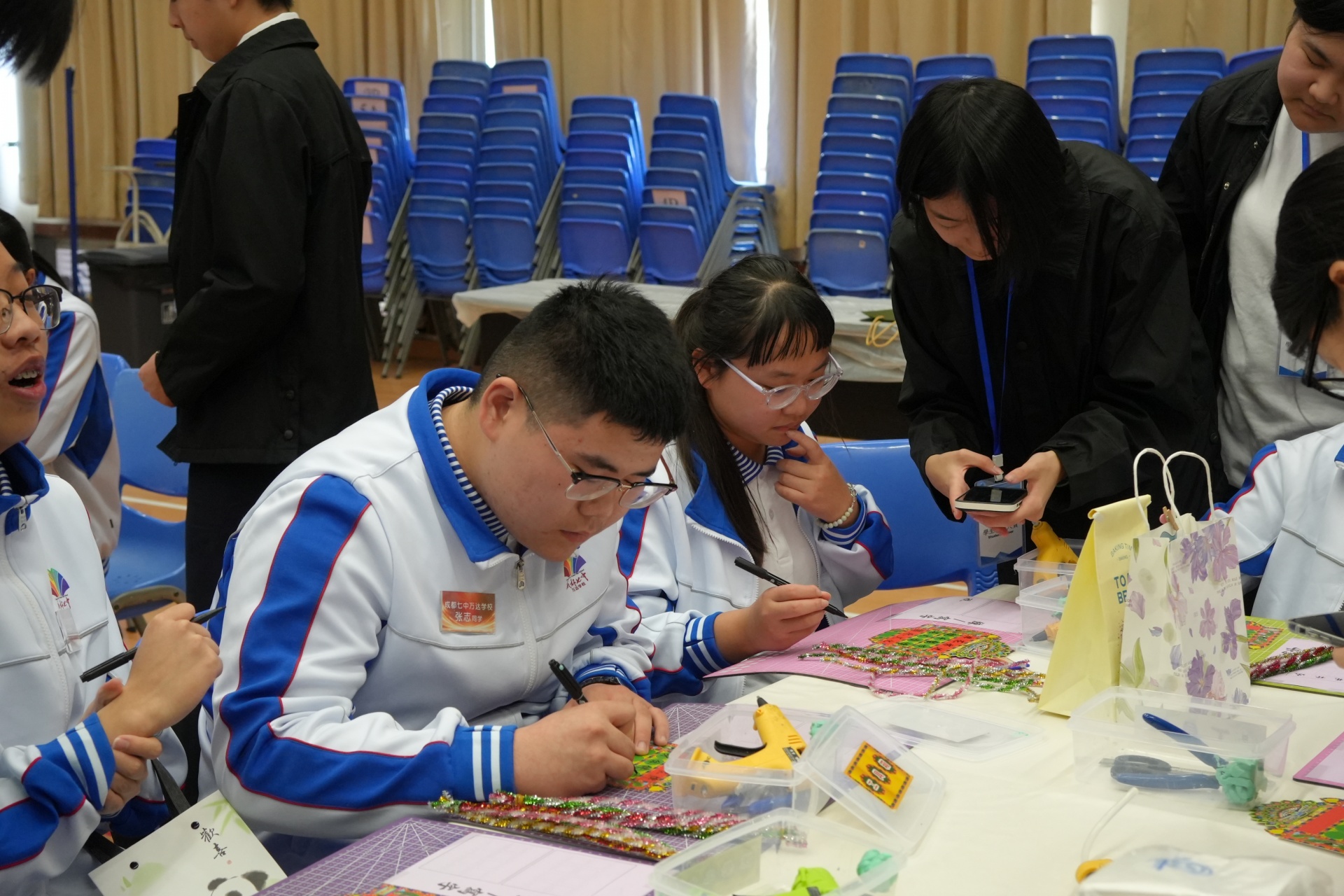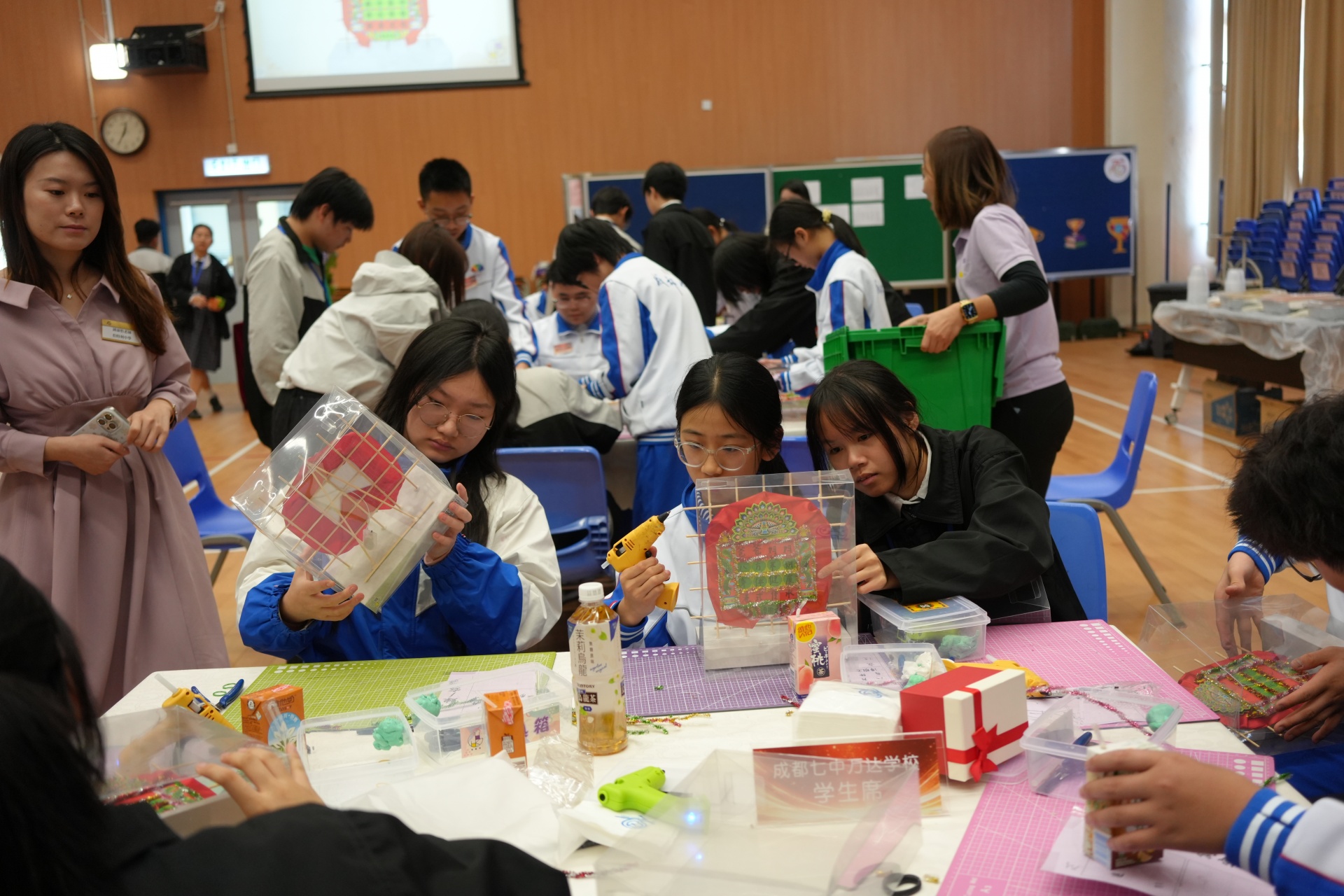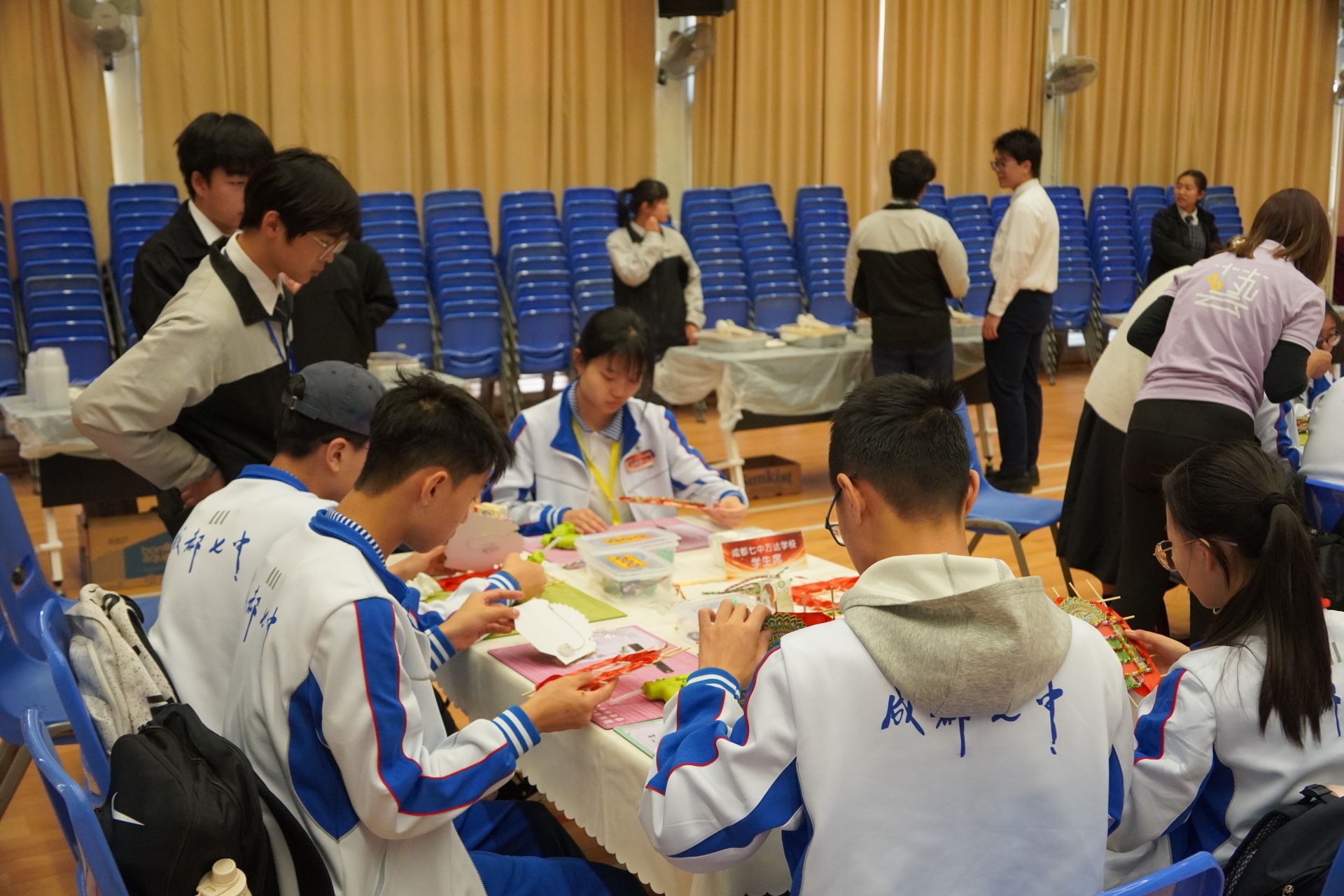 The day's activities were diverse, including the introduction of both schools about the different educational characteristics and latest developments. Students from the sister school then participated in games and activities with our student ambassadors, getting to know each other and exchanging ideas. Following this, some non-Chinese speaking students from different ethnic backgrounds participated in an interactive English learning activity, which not only helped enhance their motivation to learn English and their understanding of Hong Kong's unique characteristics but also deepened friendships and strengthened their sense of cultural integration. The teachers of sister school were able to taste the well prepared coffee from our school's coffee team and expressed their appreciation for the students' brewing skills. We also arranged two traditional handicraft workshops for them, including Mini Flower Board Crafting Workshop and Dragon Beard Candy Trial Class, so as to experience Hong Kong's traditional crafts and food production. During the lunch time, they tried some Hong Kong's specialty snacks and ethnic minority foods. Besides, our visitors from Chengdu watched the Oriental Dance performance and Pakistani folk dance, gaining a multi-faceted understanding of Hong Kong's unique characteristics and multiculturalism.