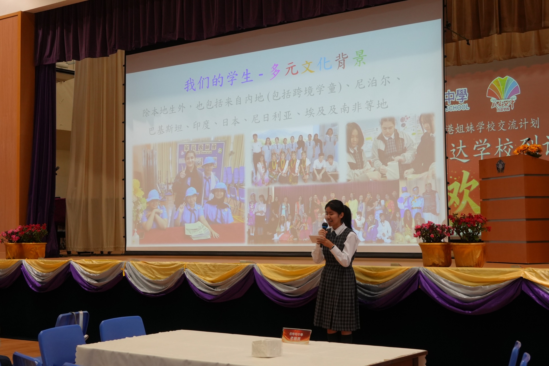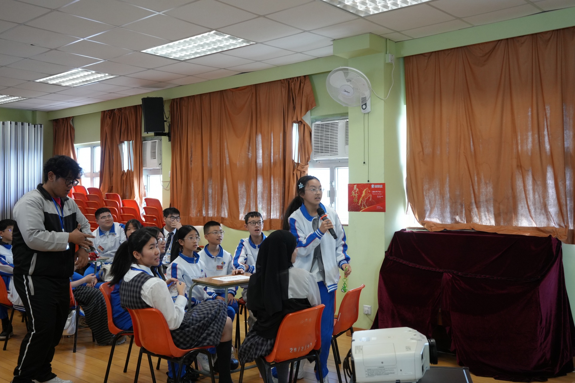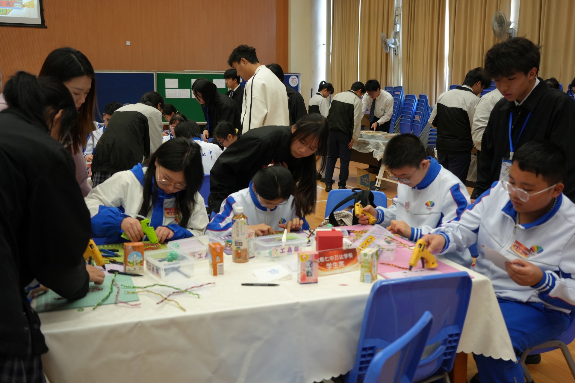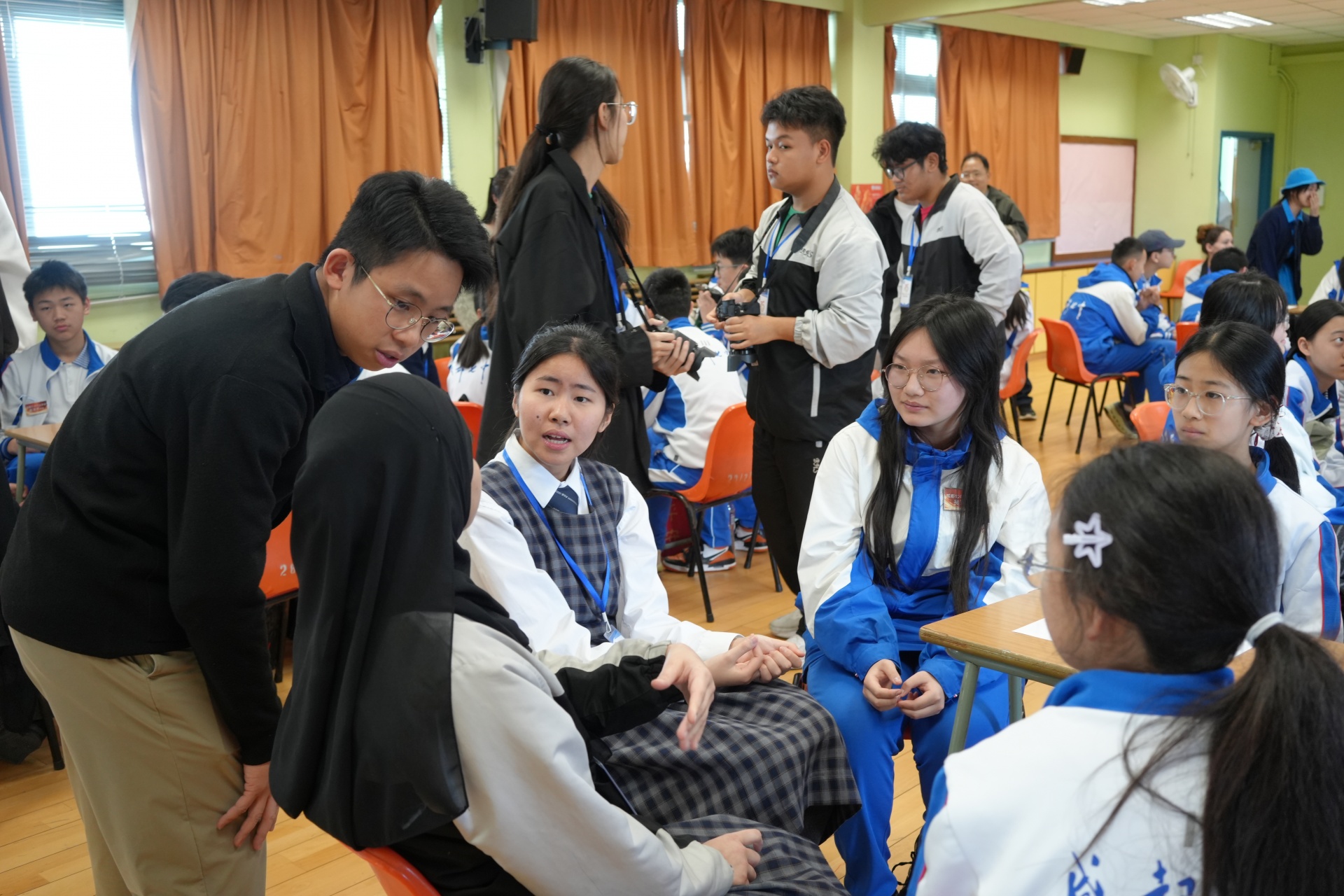 The day's activities were diverse, including the introduction of both schools about the different educational characteristics and latest developments. Students from the sister school then participated in games and activities with our student ambassadors, getting to know each other and exchanging ideas. Following this, some non-Chinese speaking students from different ethnic backgrounds participated in an interactive English learning activity, which not only helped enhance their motivation to learn English and their understanding of Hong Kong's unique characteristics but also deepened friendships and strengthened their sense of cultural integration. The teachers of sister school were able to taste the well prepared coffee from our school's coffee team and expressed their appreciation for the students' brewing skills. We also arranged two traditional handicraft workshops for them, including Mini Flower Board Crafting Workshop and Dragon Beard Candy Trial Class, so as to experience Hong Kong's traditional crafts and food production. During the lunch time, they tried some Hong Kong's specialty snacks and ethnic minority foods. Besides, our visitors from Chengdu watched the Oriental Dance performance and Pakistani folk dance, gaining a multi-faceted understanding of Hong Kong's unique characteristics and multiculturalism.
