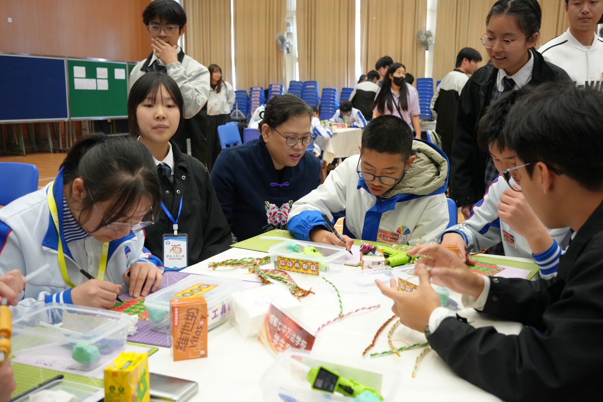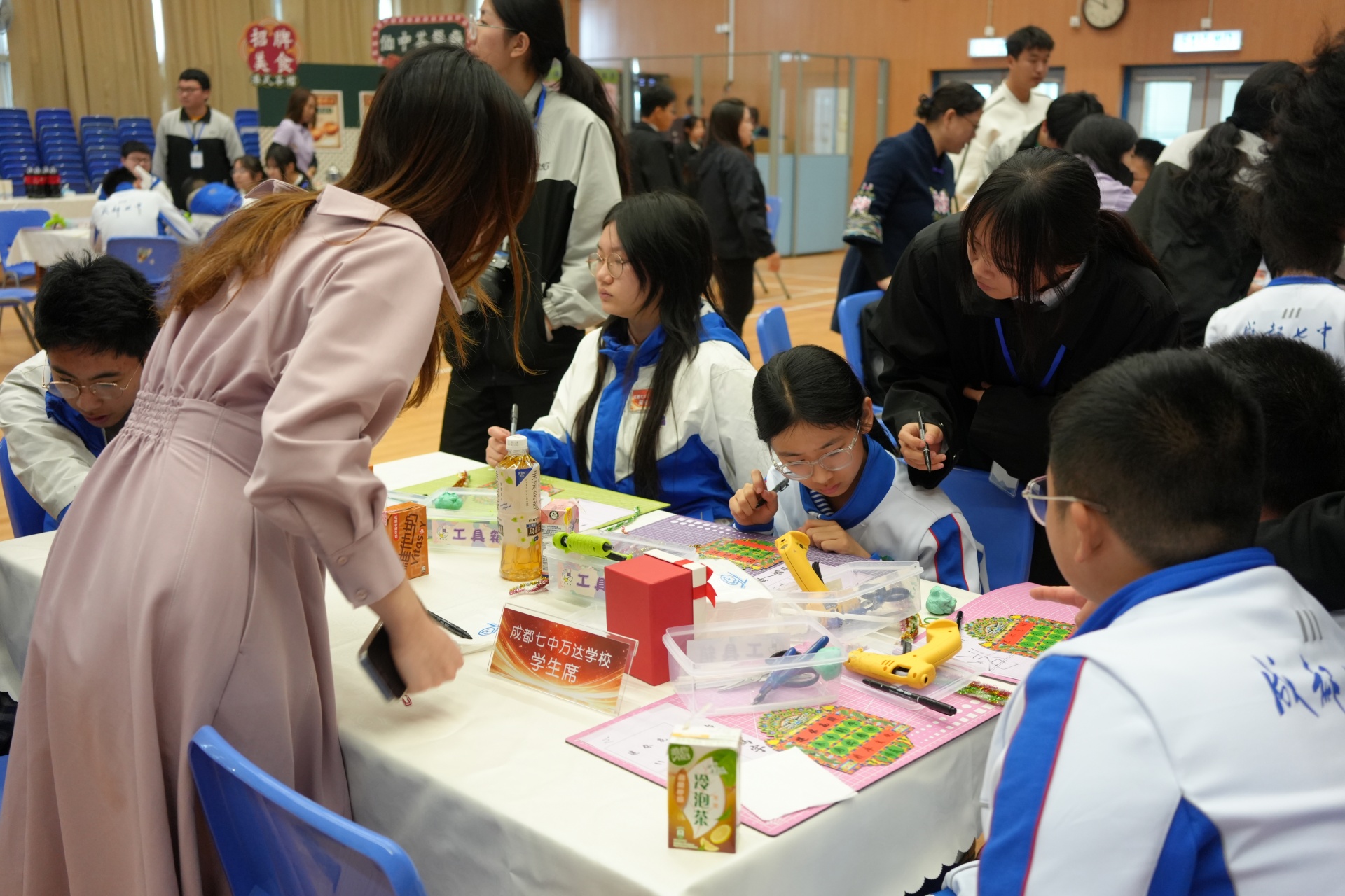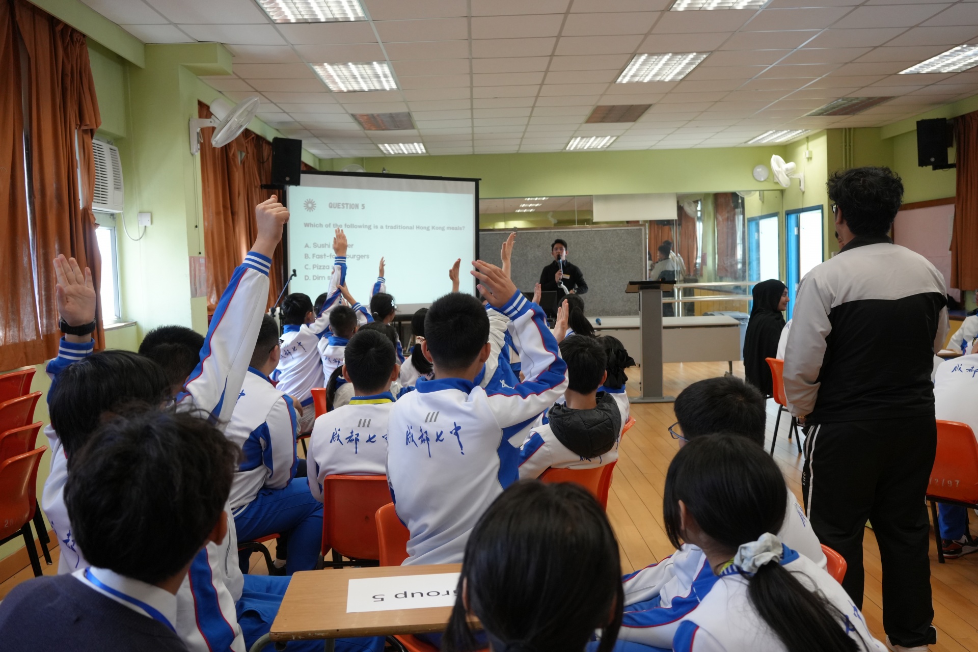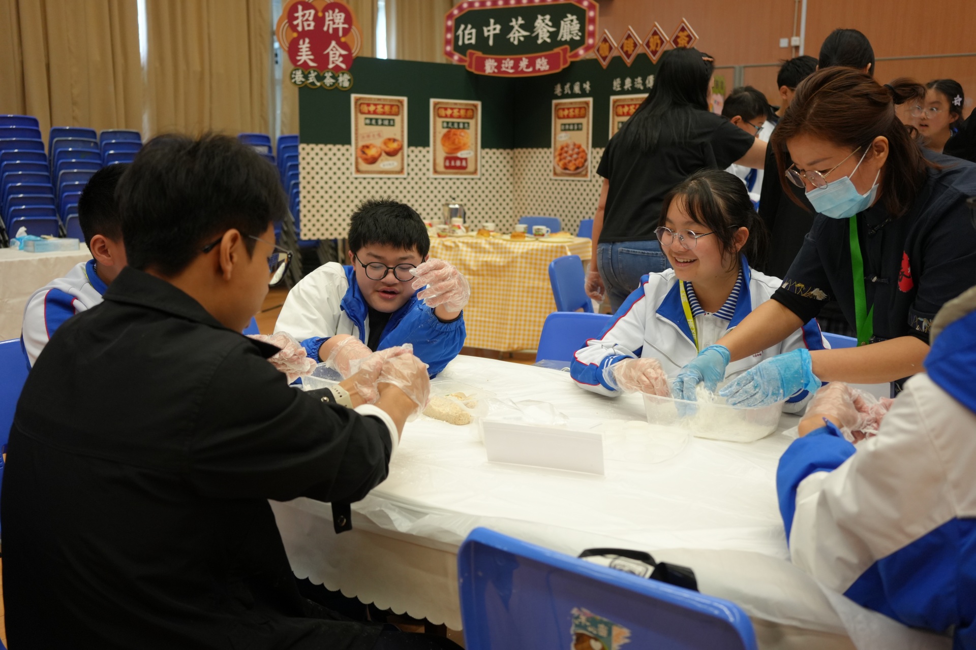 The day's activities were diverse, including the introduction of both schools about the different educational characteristics and latest developments. Students from the sister school then participated in games and activities with our student ambassadors, getting to know each other and exchanging ideas. Following this, some non-Chinese speaking students from different ethnic backgrounds participated in an interactive English learning activity, which not only helped enhance their motivation to learn English and their understanding of Hong Kong's unique characteristics but also deepened friendships and strengthened their sense of cultural integration. The teachers of sister school were able to taste the well prepared coffee from our school's coffee team and expressed their appreciation for the students' brewing skills. We also arranged two traditional handicraft workshops for them, including Mini Flower Board Crafting Workshop and Dragon Beard Candy Trial Class, so as to experience Hong Kong's traditional crafts and food production. During the lunch time, they tried some Hong Kong's specialty snacks and ethnic minority foods. Besides, our visitors from Chengdu watched the Oriental Dance performance and Pakistani folk dance, gaining a multi-faceted understanding of Hong Kong's unique characteristics and multiculturalism.