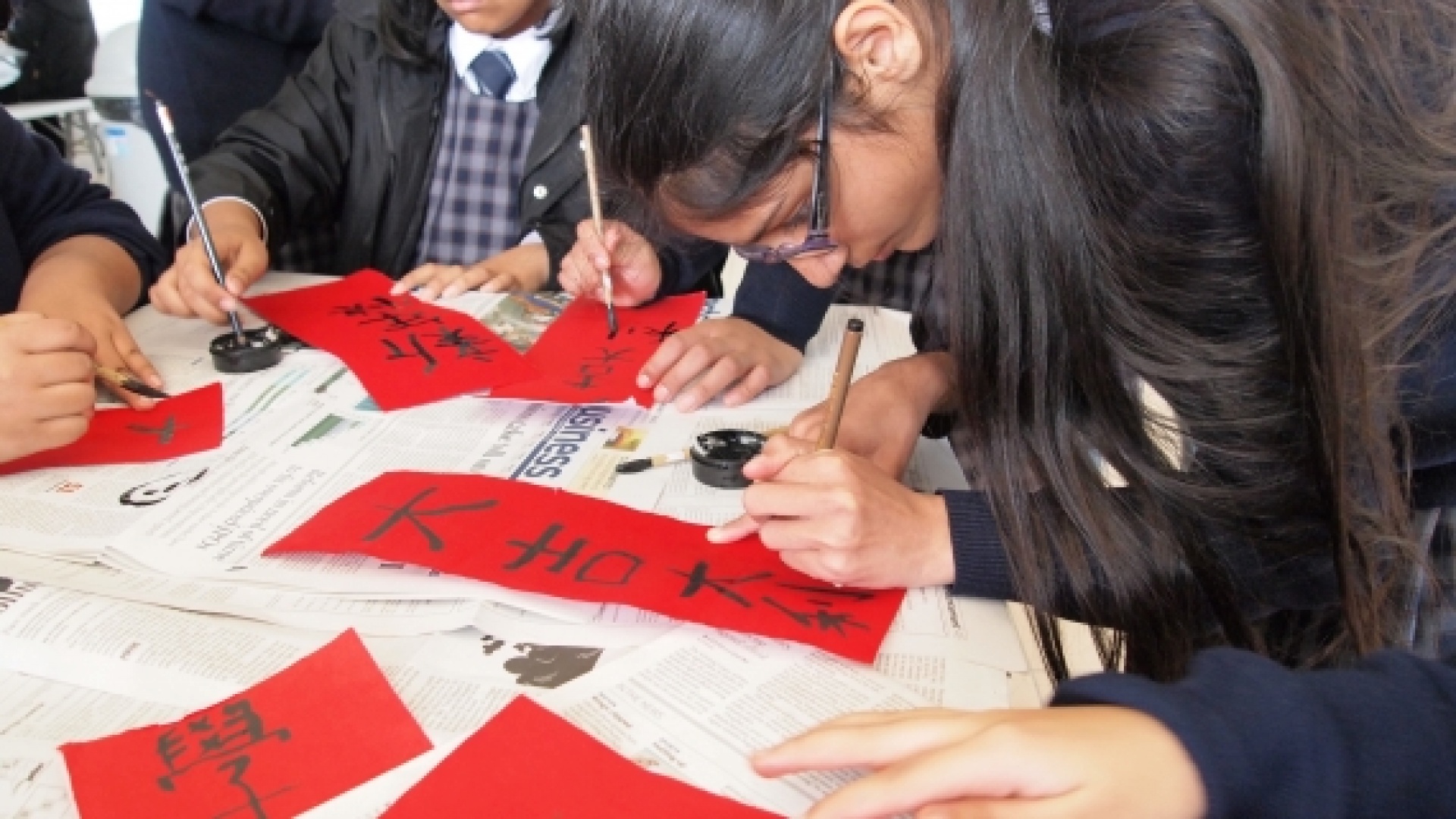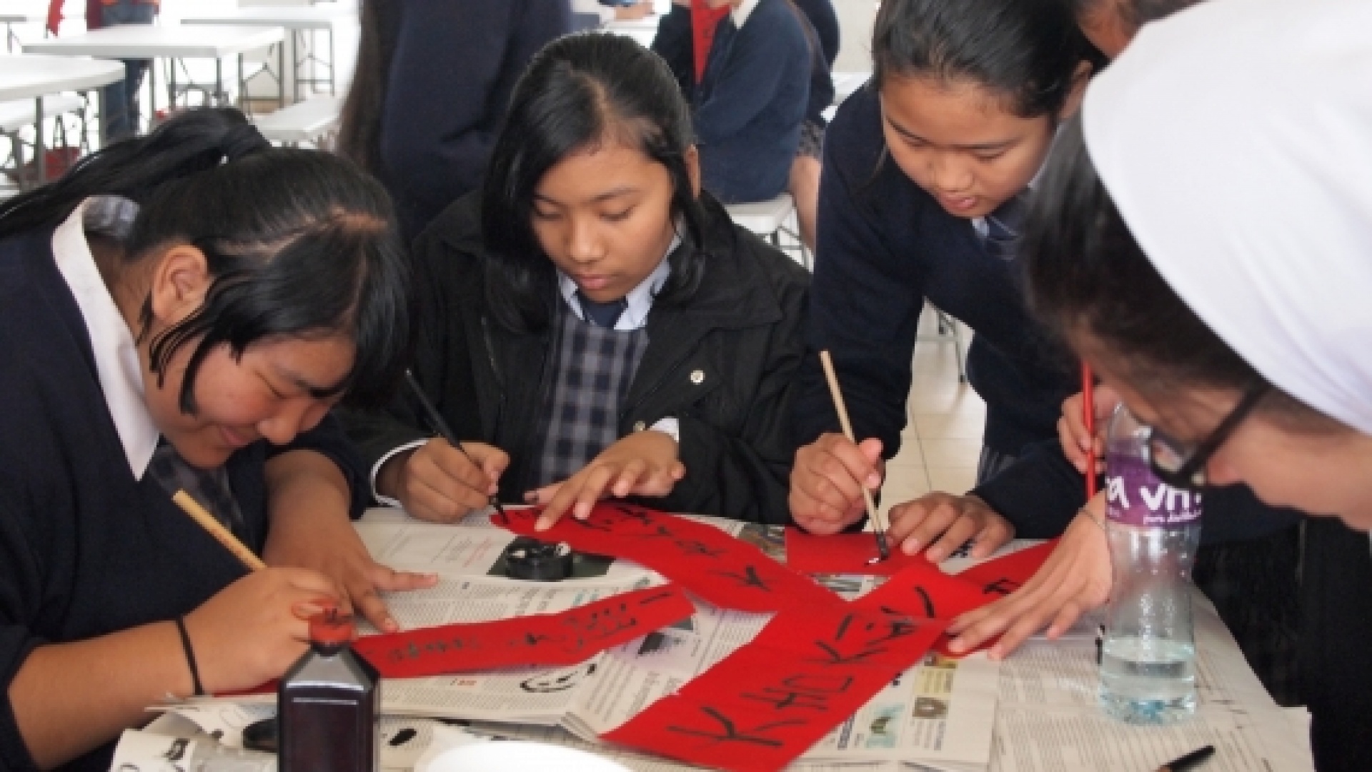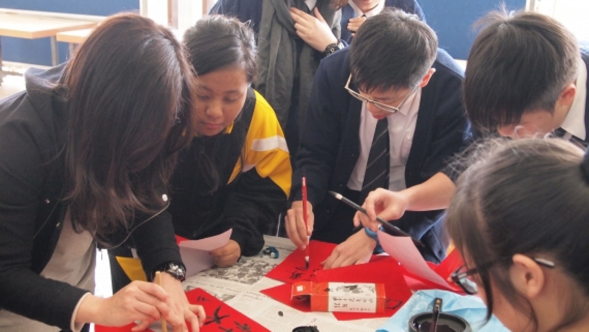 The NCS Chinese Department organised a Chinese New Year Fai Chun (Red Banner) activity from 28-1-2014 to 29-1-2014 so as to enhance NCS students' understanding of Chinese culture and allow NCS and local students to enjoy writing Fai Chun and celebrate the Chinese New Year.