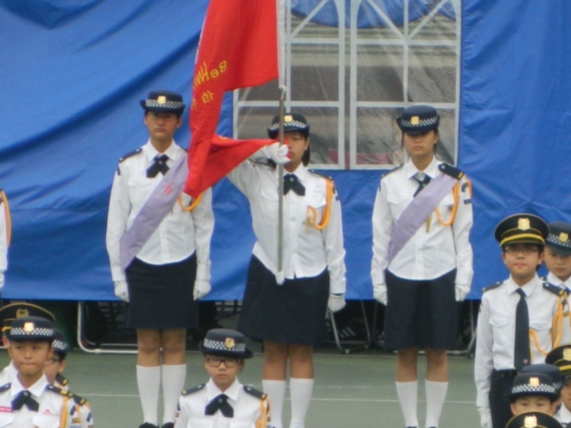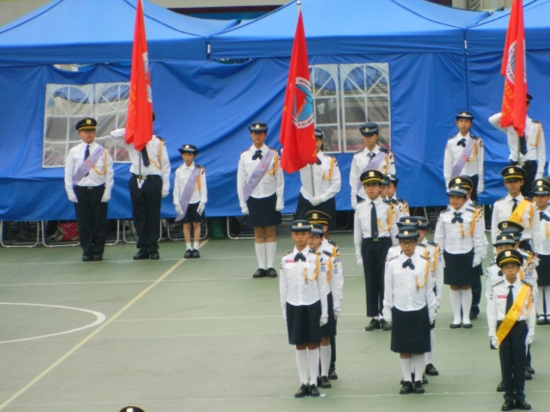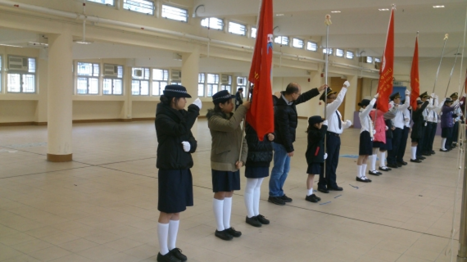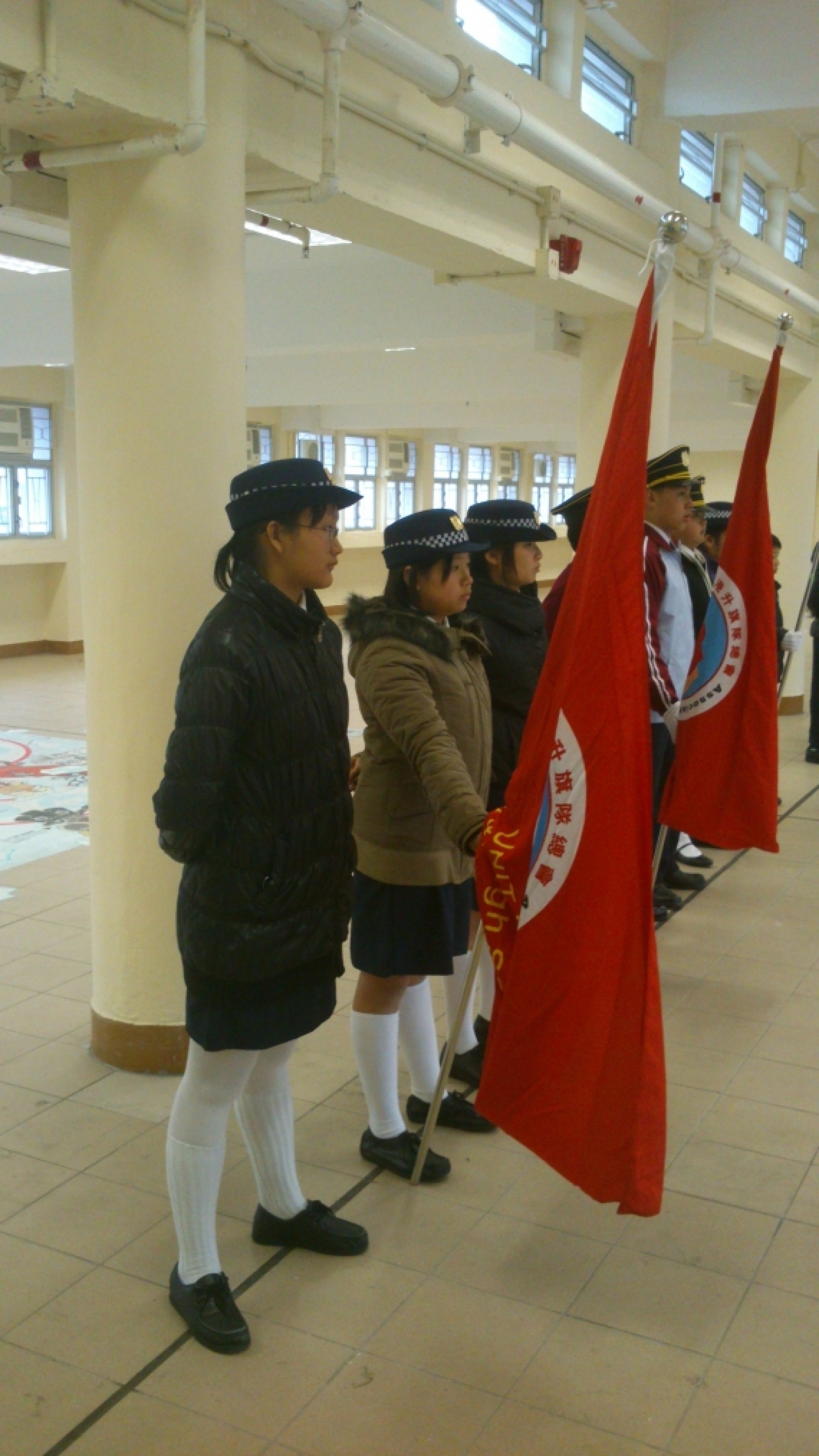 The Discipline and Guidance Team has organised the 'Special Training Course' – Flag-guard for more than a year. In order to let students experience the spirit and features of uniform teams and have more exchange with each other, the Discipline and Guidance Team has invited some students to participate in the 2014 Annual Parade of the Association of Hong Kong Flag-guards so that they can have better flag drill skills and a higher sense of achievement. The association has prepared a training session and a rehearsal on 15/2 and 22/2 respectively to enhance students' performance in the parade and allow them to practice what they have learnt, broaden their horizons and experience the activities of uniform teams. Ho Hei Man (2A), Wong Tsz Yu (2A) and Tian Bin (2C) participated in the activities and won the 2nd runner-up of the flag drill competition (secondary) with their outstanding performance on 1/3. Their attempts and effort are not in vain. Congratulations.