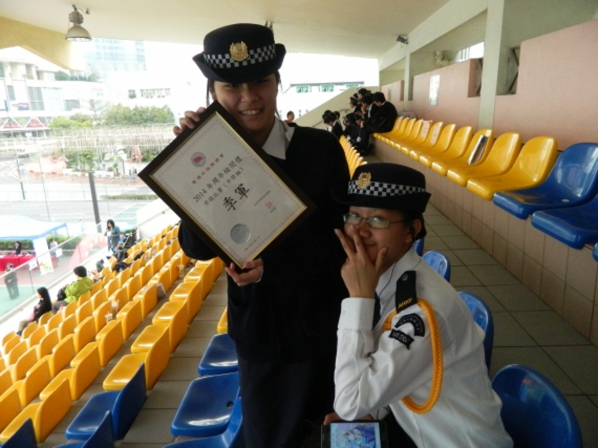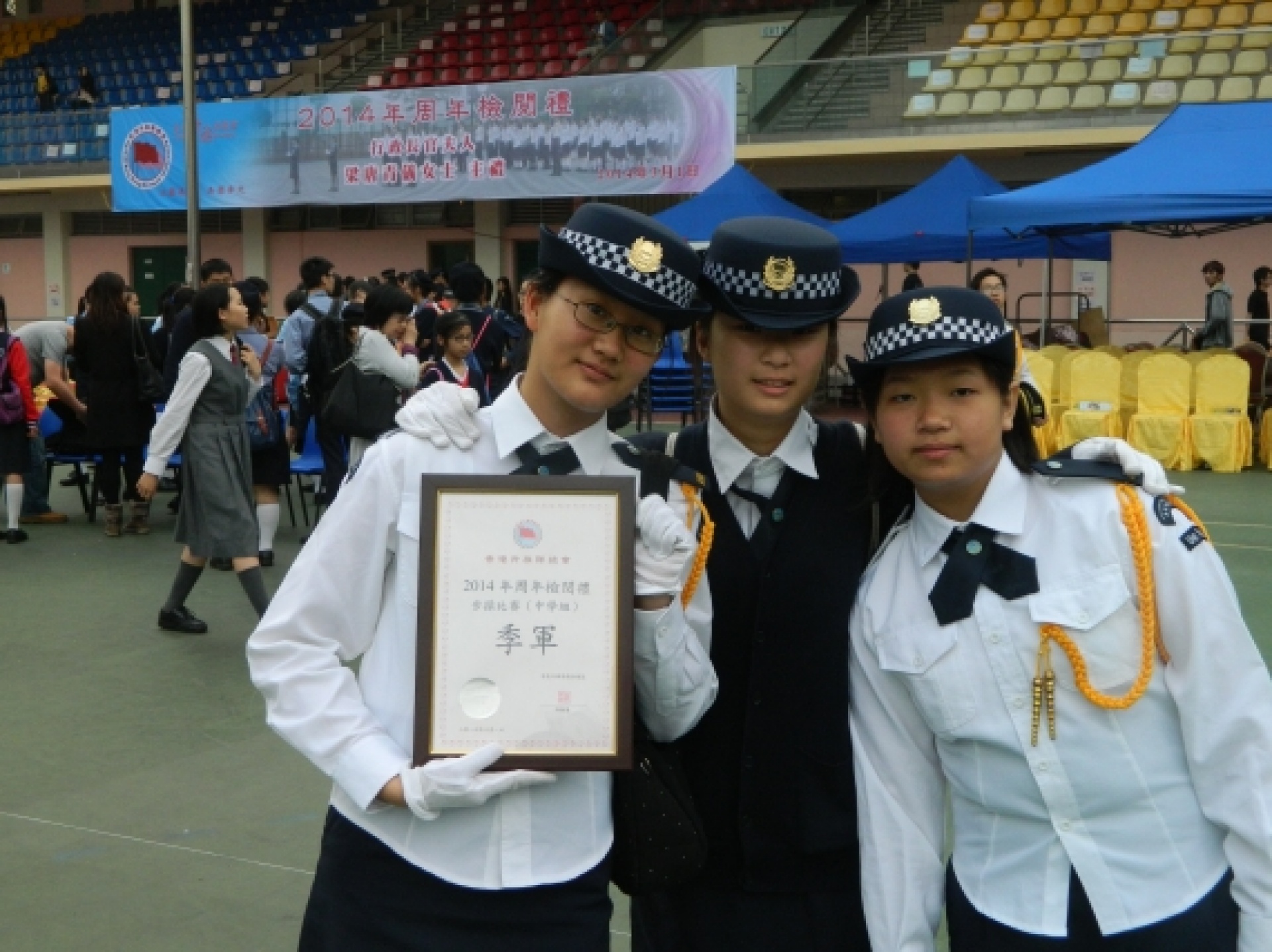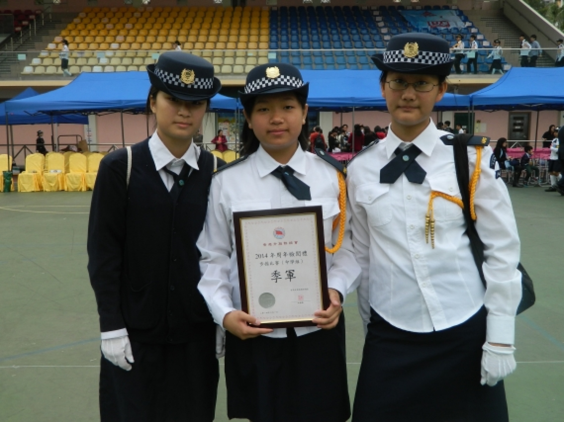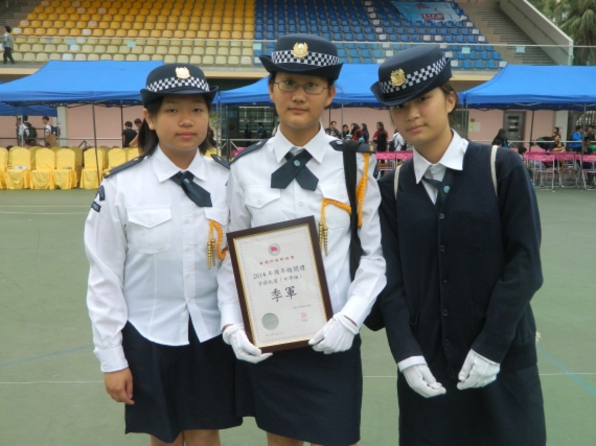 The Discipline and Guidance Team has organised the 'Special Training Course' – Flag-guard for more than a year. In order to let students experience the spirit and features of uniform teams and have more exchange with each other, the Discipline and Guidance Team has invited some students to participate in the 2014 Annual Parade of the Association of Hong Kong Flag-guards so that they can have better flag drill skills and a higher sense of achievement. The association has prepared a training session and a rehearsal on 15/2 and 22/2 respectively to enhance students' performance in the parade and allow them to practice what they have learnt, broaden their horizons and experience the activities of uniform teams. Ho Hei Man (2A), Wong Tsz Yu (2A) and Tian Bin (2C) participated in the activities and won the 2nd runner-up of the flag drill competition (secondary) with their outstanding performance on 1/3. Their attempts and effort are not in vain. Congratulations.