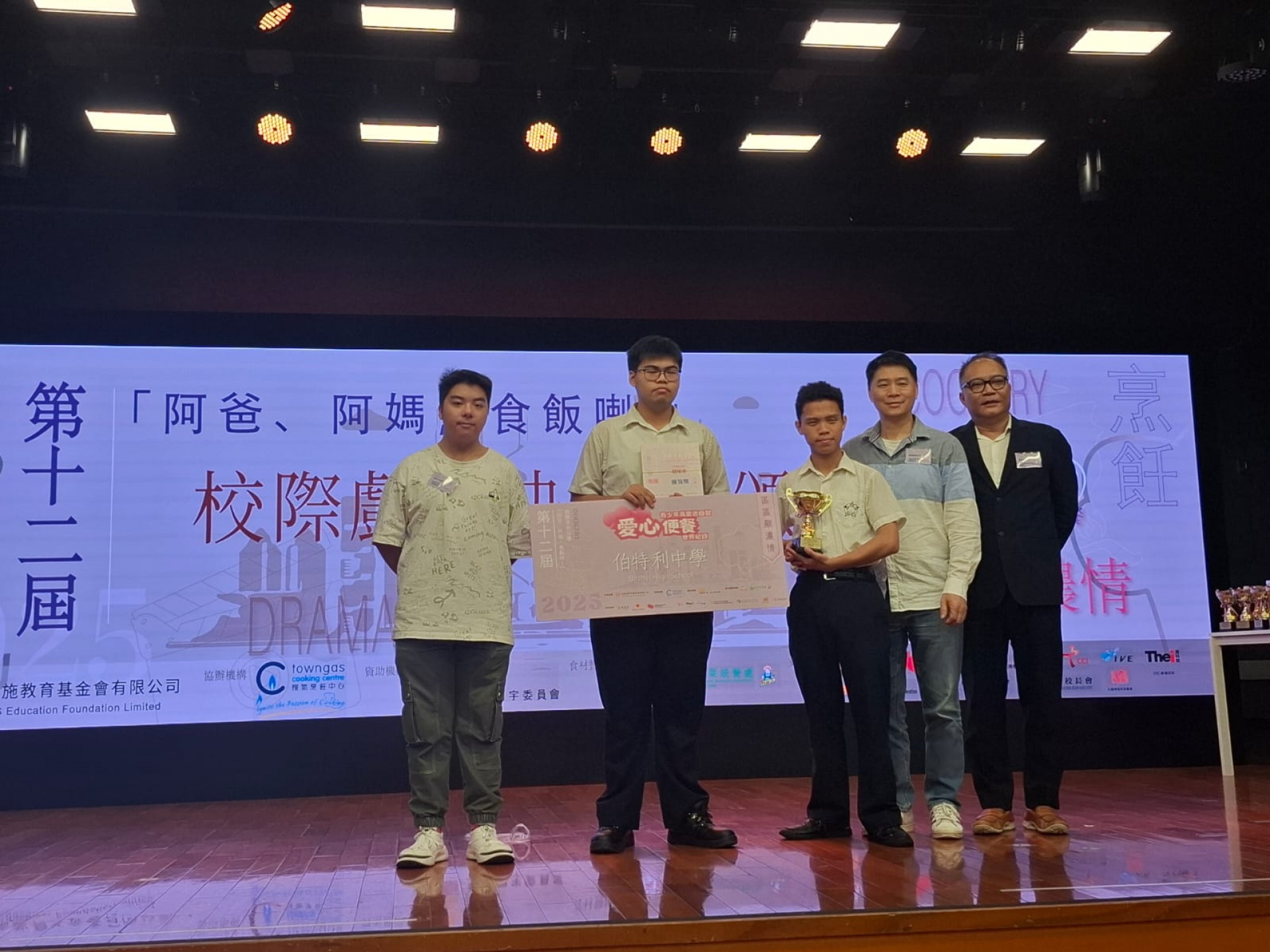14位學生組隊於10月26日參加第12屆「阿爸、阿媽,食飯喇!」校際烹飪比賽,於銅鑼灣煤氣烹飪中心先為父母烹調由中華廚藝學院師生設計之「准山馬蹄鳳凰球配杞子炒飯」,與父母老師分享「愛心便餐」後,然後將「愛心便服」送到何文田耆樂居,探訪院舍長者。本校於比賽中獲優異獎外,並與其餘的13間參賽學校創造「青少年萬里送自製愛心便餐世界紀錄」。