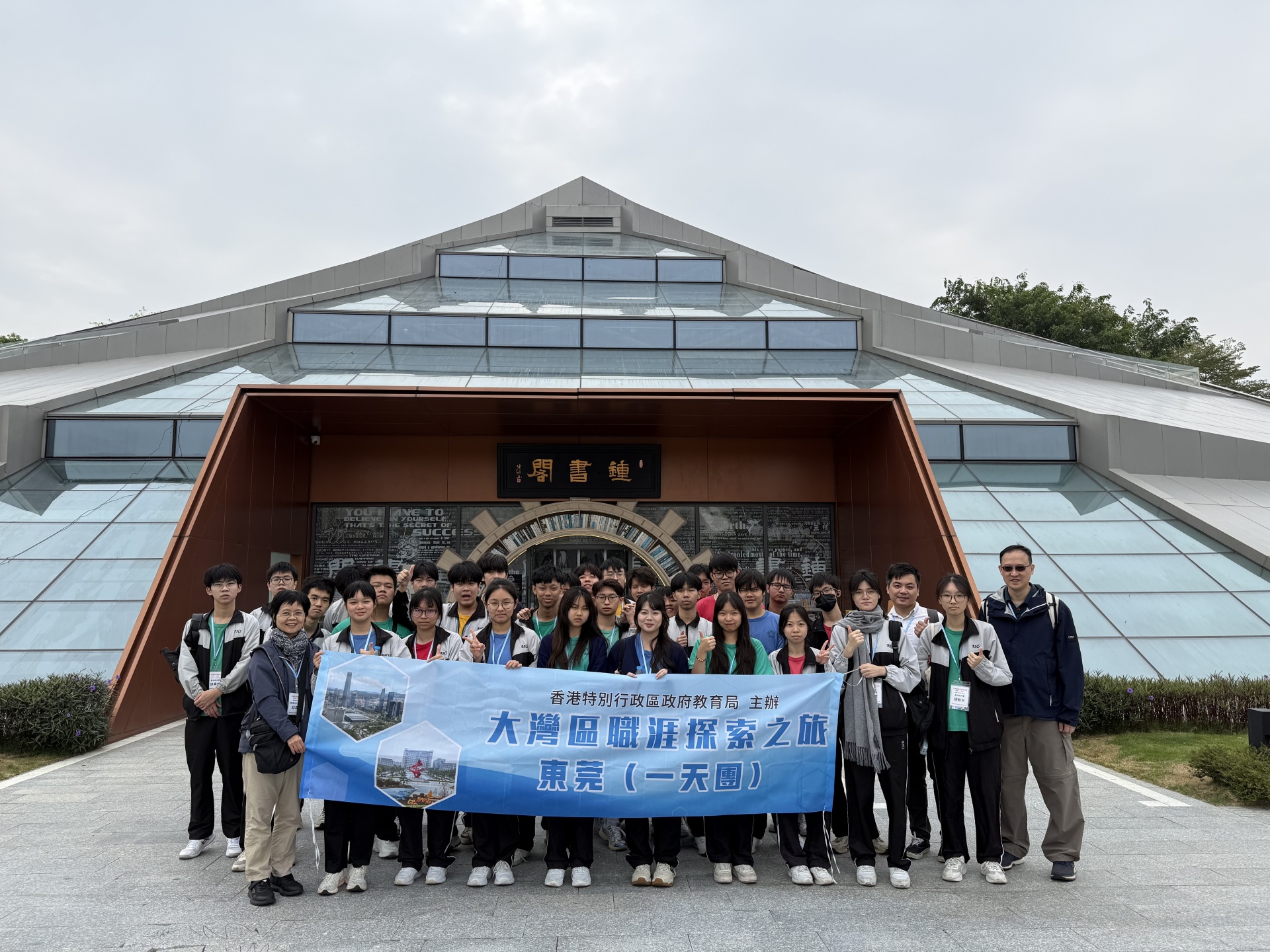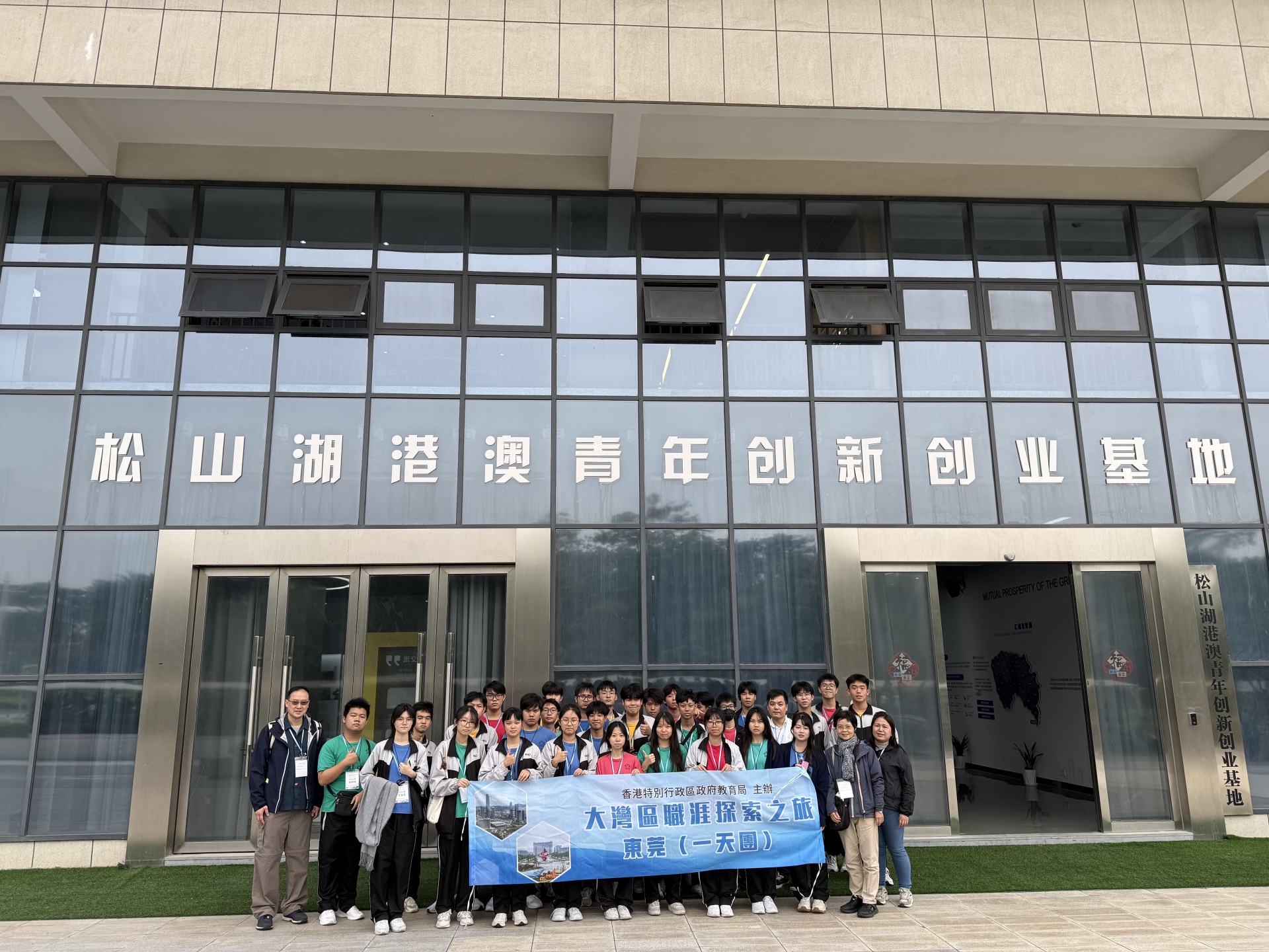 34位中六同學於10月28日參加了由教育局主辦之大灣區職涯探索之旅-東莞職涯探索之旅(一天團),師生參觀了松山湖文化藝術街區、廣東紅珊瑚藥業有限公司及松山湖港澳青年創新創業基地。同學透過親身觀察和體驗,加深認識大灣區不同行業的最新發展,更了解在內地發展如創業或就業的空間和機會,香港企業在其他大灣區城市的發展情況,以及獲得認識自我、作個人規劃、訂立目標及反思和修訂的能力。