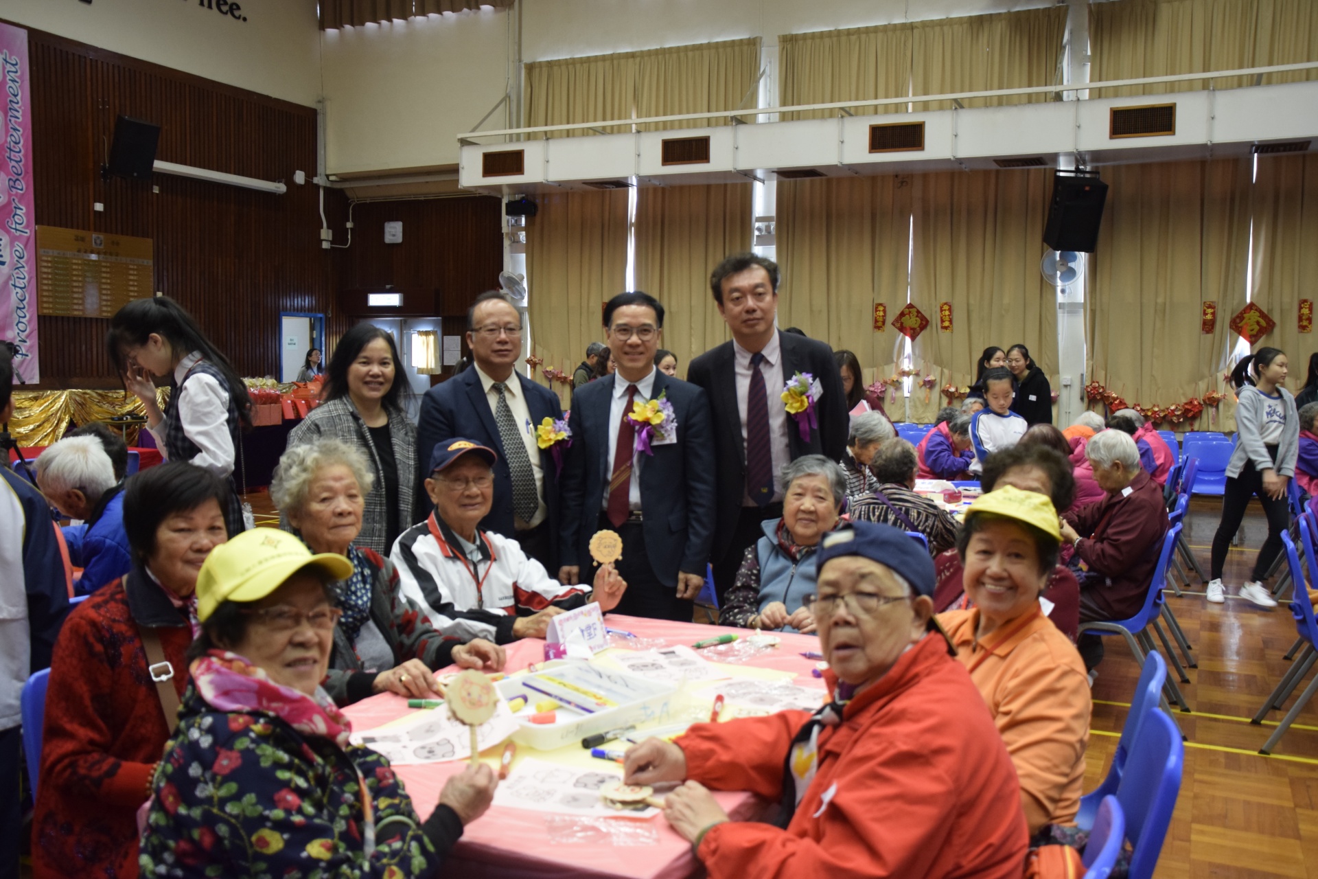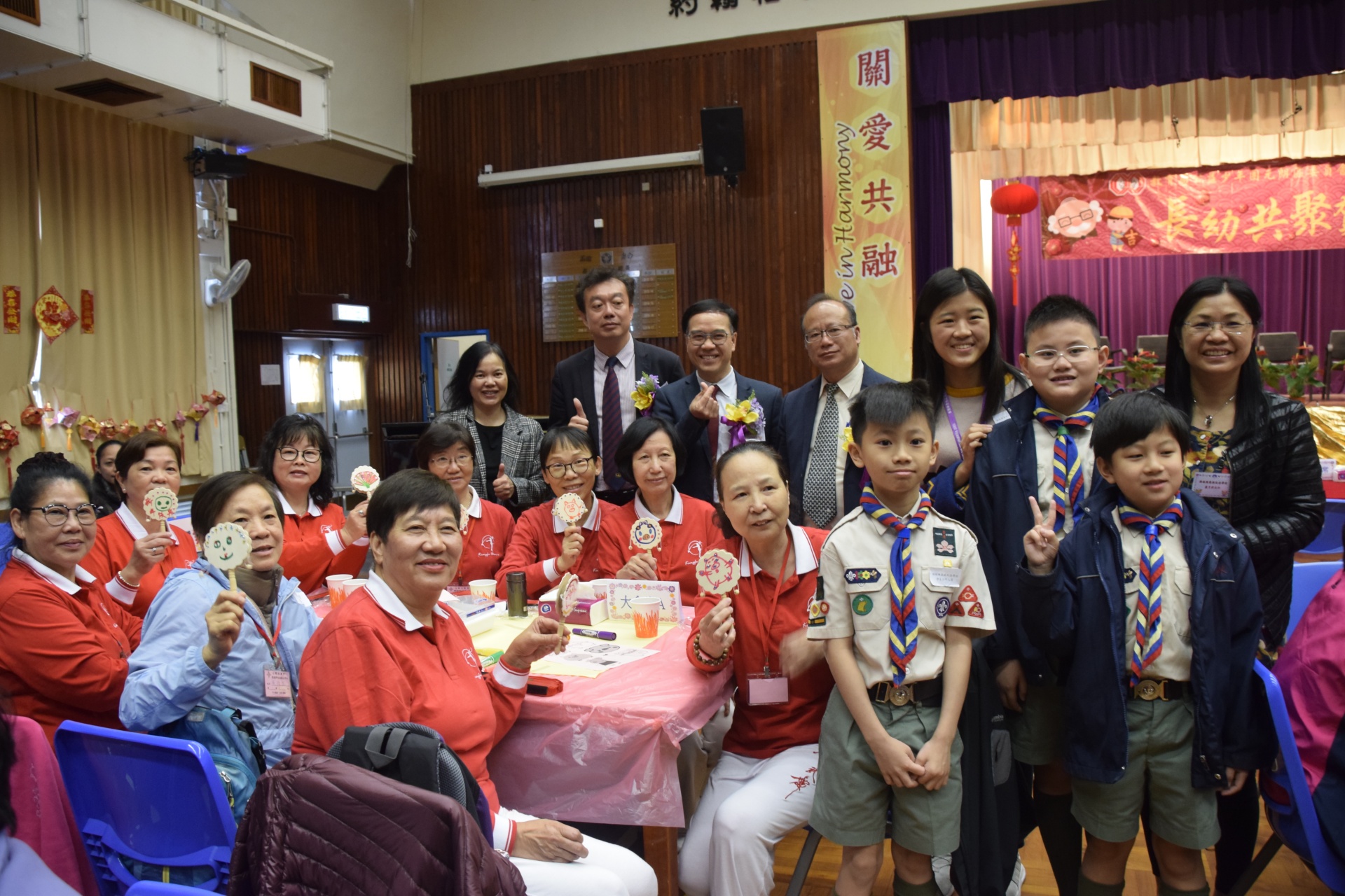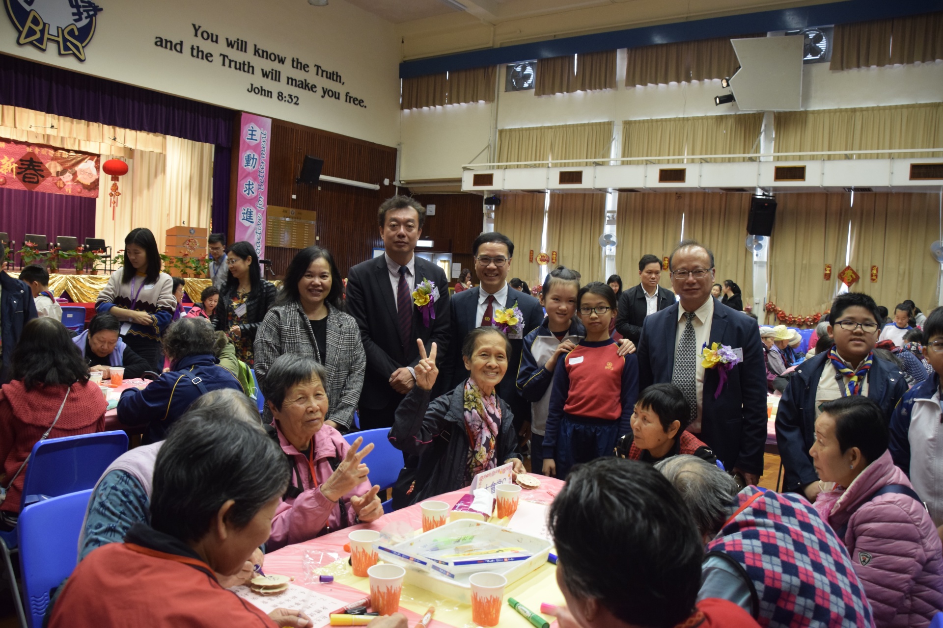 由教育局公益少年團元朗區委員會主辦,多間區內中、小學校協辦的「長幼共聚賀新春」活動,已於 2019年2月23日(星期六)假伯特利中學舉行。當天邀請了兩間長者地區中心約百位長者以及百多名學生義工,師生與長者共聚一堂,一起進行龍馬精神健身操、集體遊戲、心意坊手工藝製作活動、綜藝表演節目、抽獎及健康素食,節目豐富,各長者與學生相處融洽,慶賀新禧,體驗長幼共聚賀新春的溫馨景象
