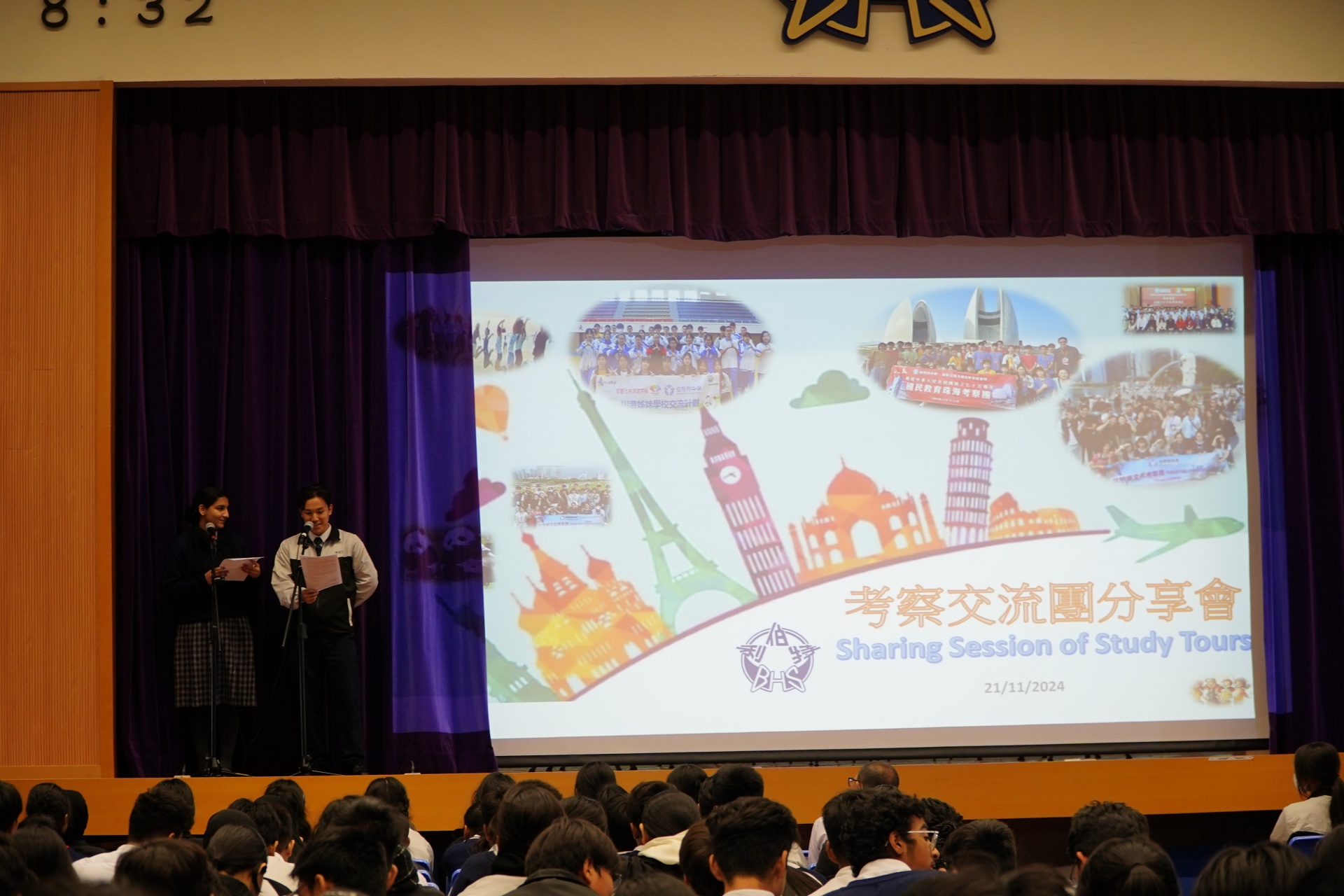 於2024年11月21日學生週會,文化交流組舉辦了分享會,讓最近曾參與境外交流考察活動的學生,分享交流經歷及考察活動的得著。