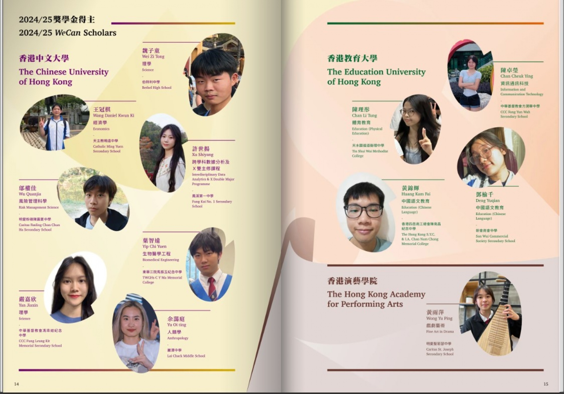 魏同學現正於香港中文大學修讀理學課程,每年可獲最高港幣二萬五千元獎學金,總共港幣十萬元。而獲獎者在就讀期間保持良好成績,並參與義工服務達若干時數,即可持續領取獎學金。