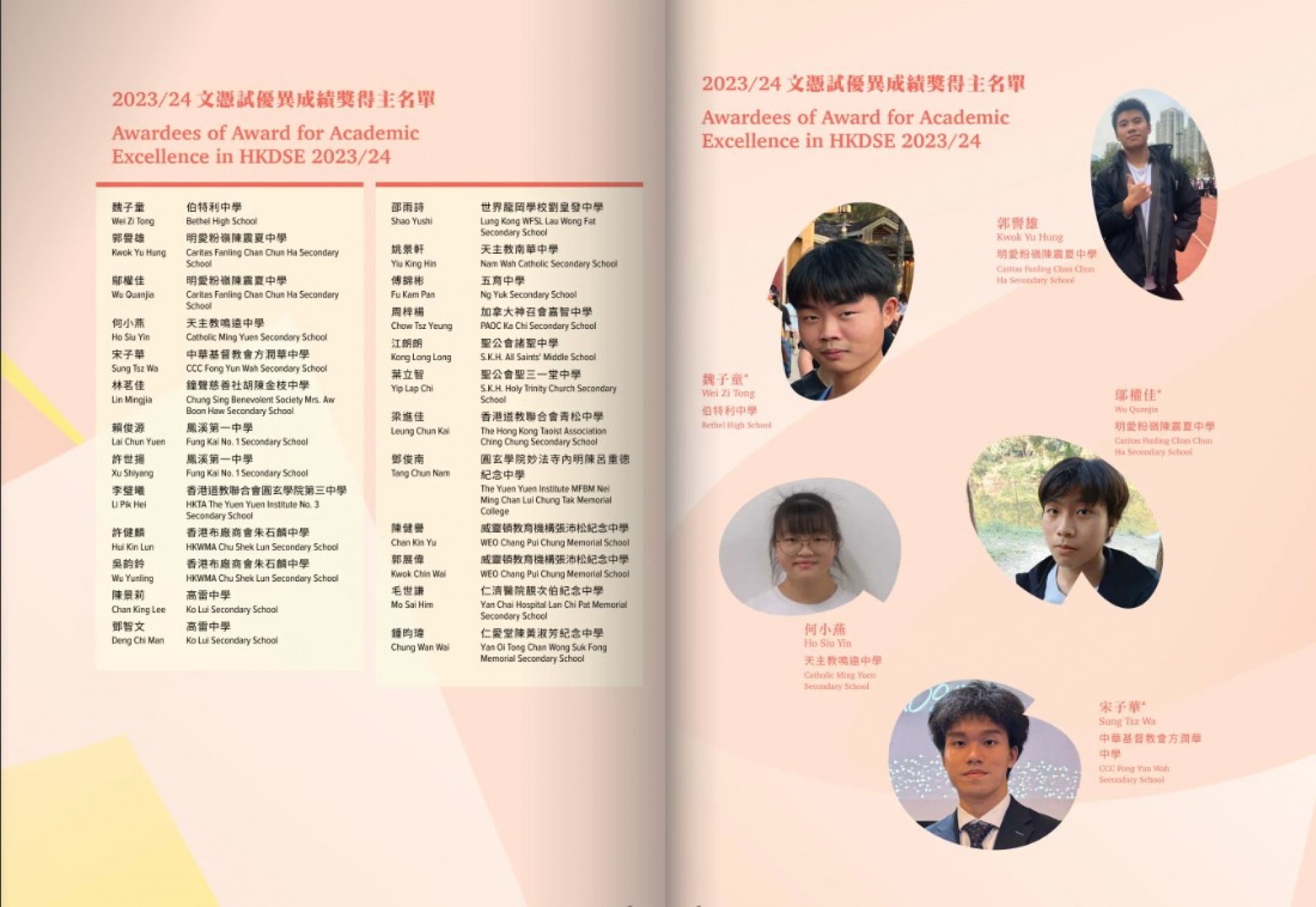 本校畢業生魏子童同學喜獲九龍倉集團2024「學校起動」計劃獎學金,同時在文憑試因物理科目取得5**成績而獲頒數理傑出獎。