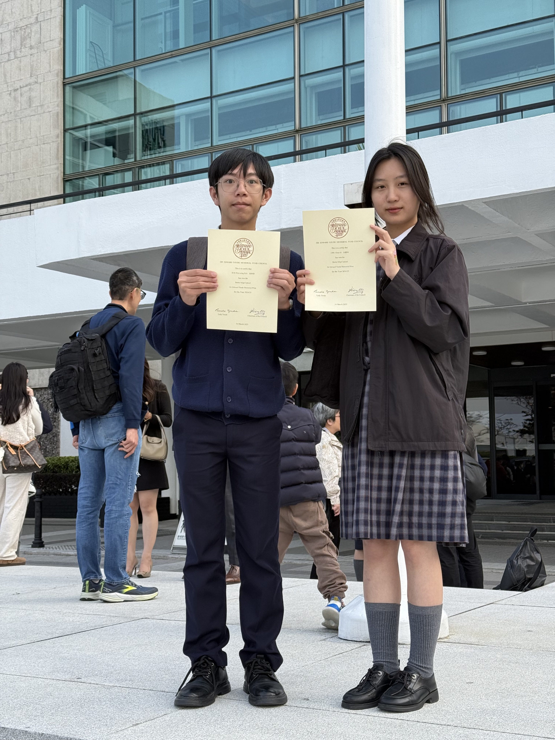 6A朱震琦及孫偉榮獲得2024/25年度尤德爵士紀念基金高中學生獎,頒獎典禮於2025年3月16日假香港大會堂音樂廳舉行。「尤德爵士紀念基金」旨在鼓勵本港的高中學生達至高度的學習能力,以及發展領導才能。