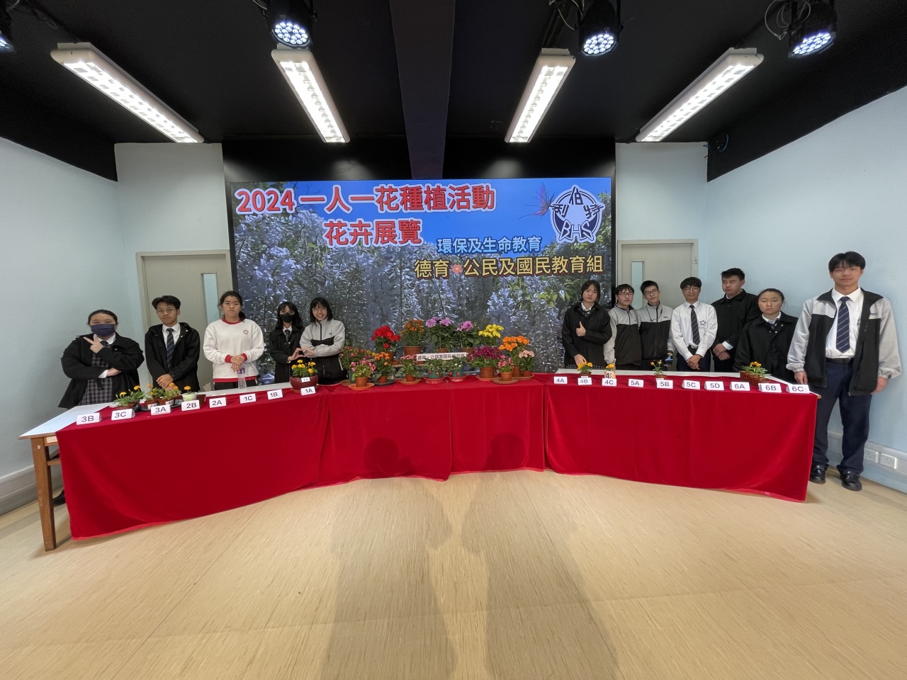 德育組 : 德育組舉辦一人一花活動,培養學生的環境保護意識。