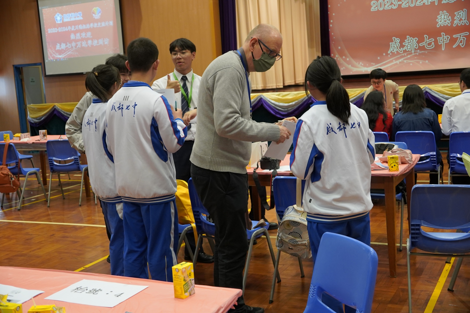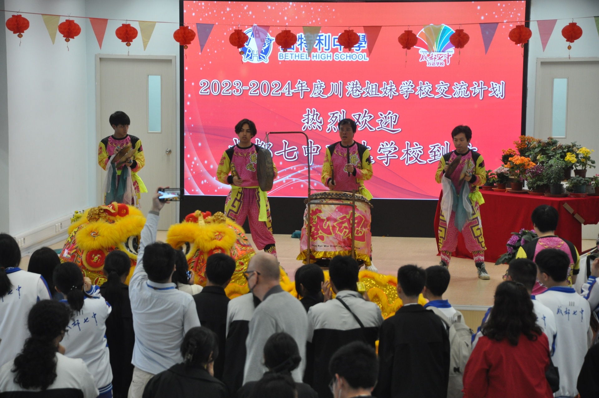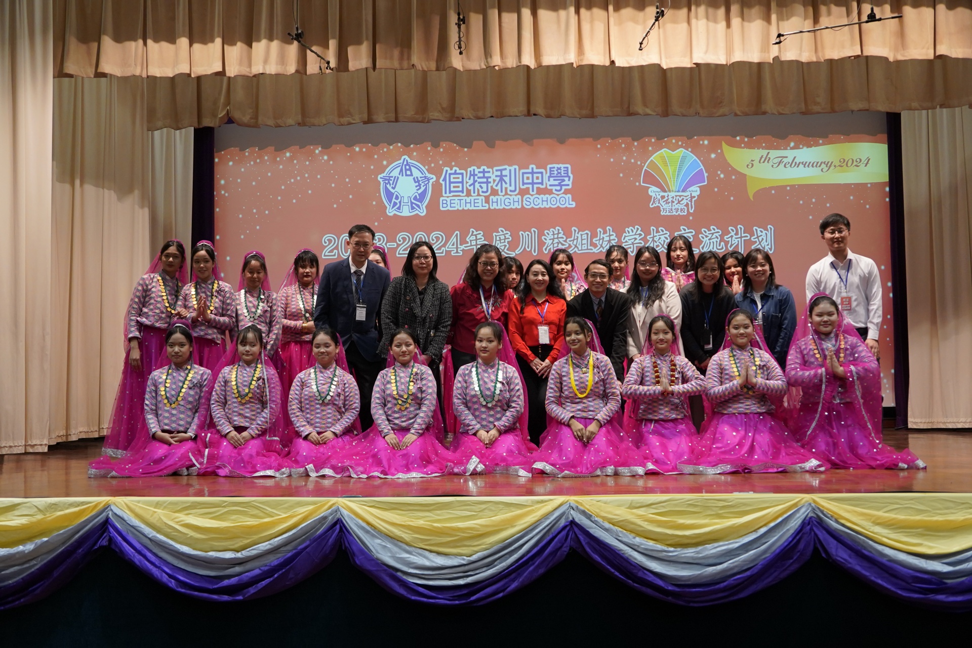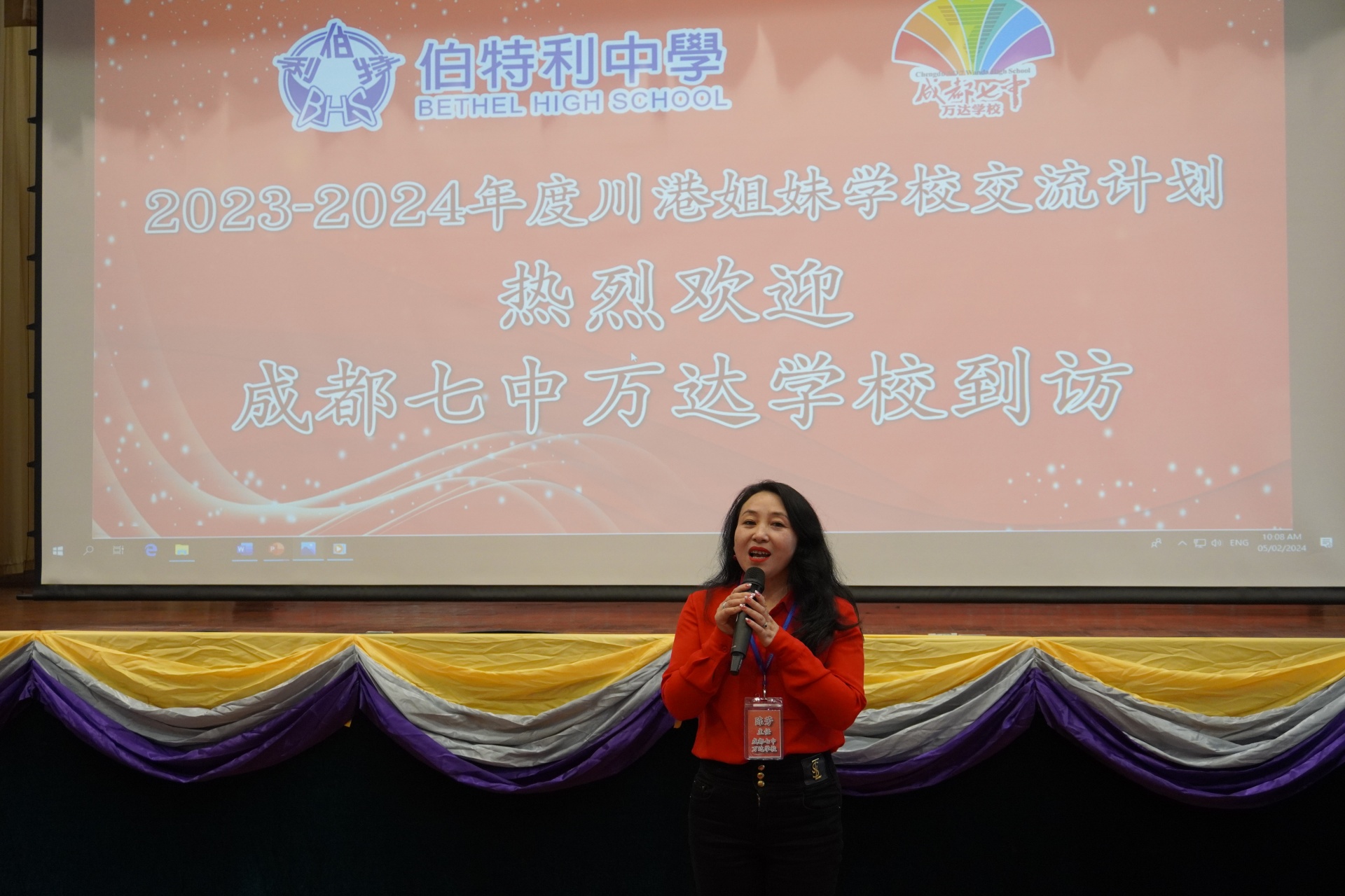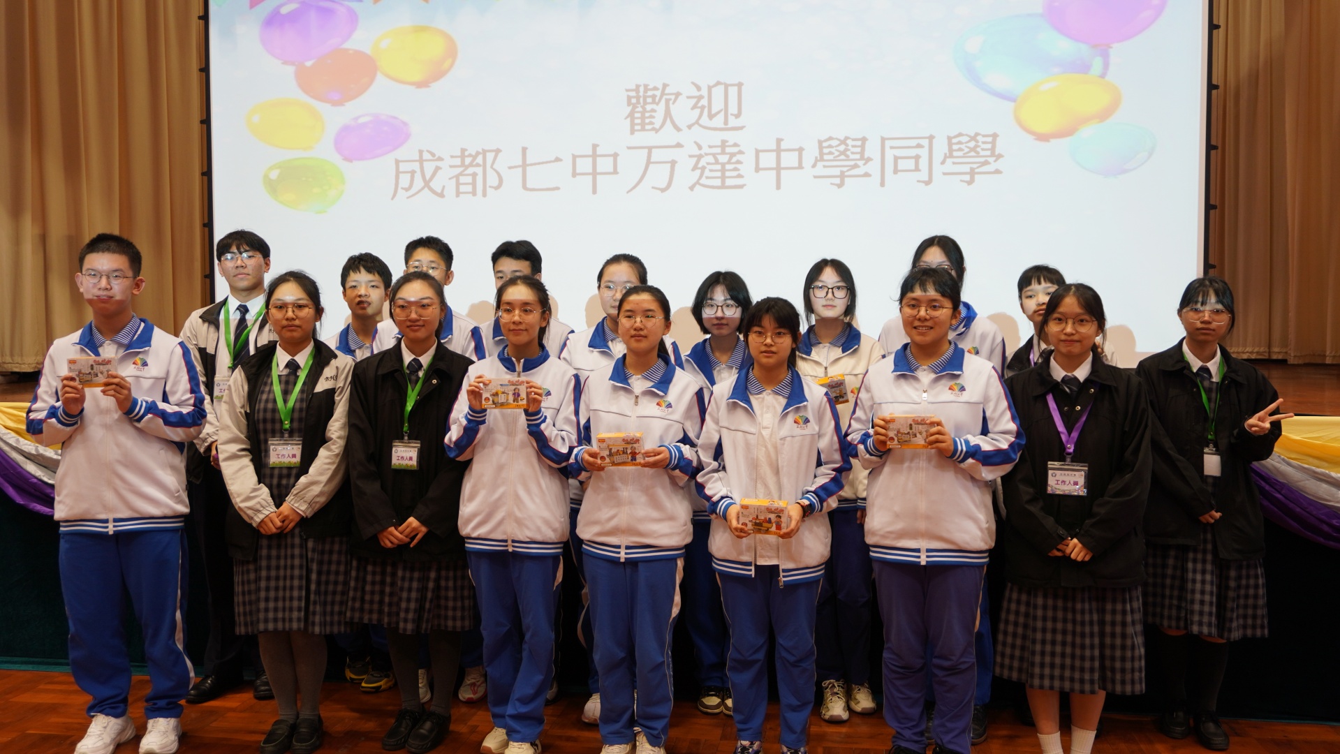 於2024年2月5日(星期一),川港姊妹學校交流計劃中之四川姊妹學校「成都七中萬達學校」到訪伯中,三十多位遠道由四川成都市來的老師及學生,參與文化交流組籌辦的交流活動,當中包括學校介紹、老師會議、姊妹學校同學互相認識及交流活動、地壺球友誼賽、校園參觀、午餐聚會、東方舞表演、參與中國文化週活動等,當日姊妹學校老師感谢本校師生的熱情款待,安排豐富及精采節目,帶給他們愉快和美好的遊學體驗。