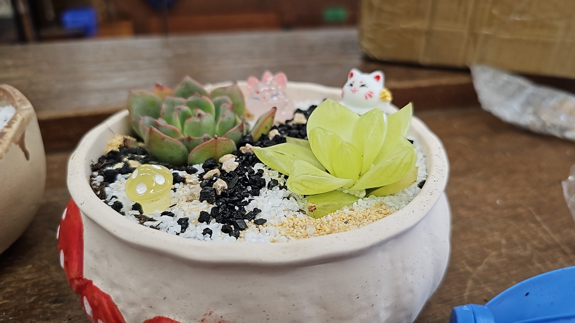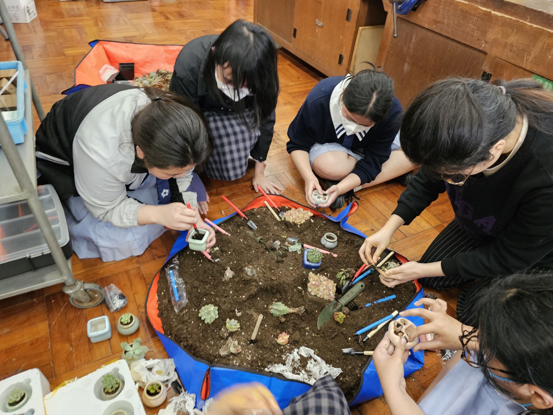 同學們為小盆栽換土