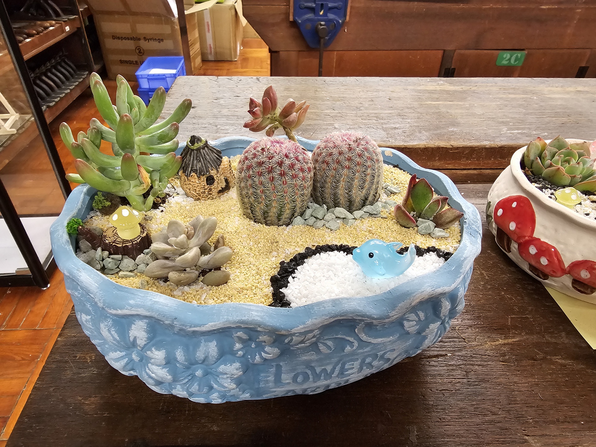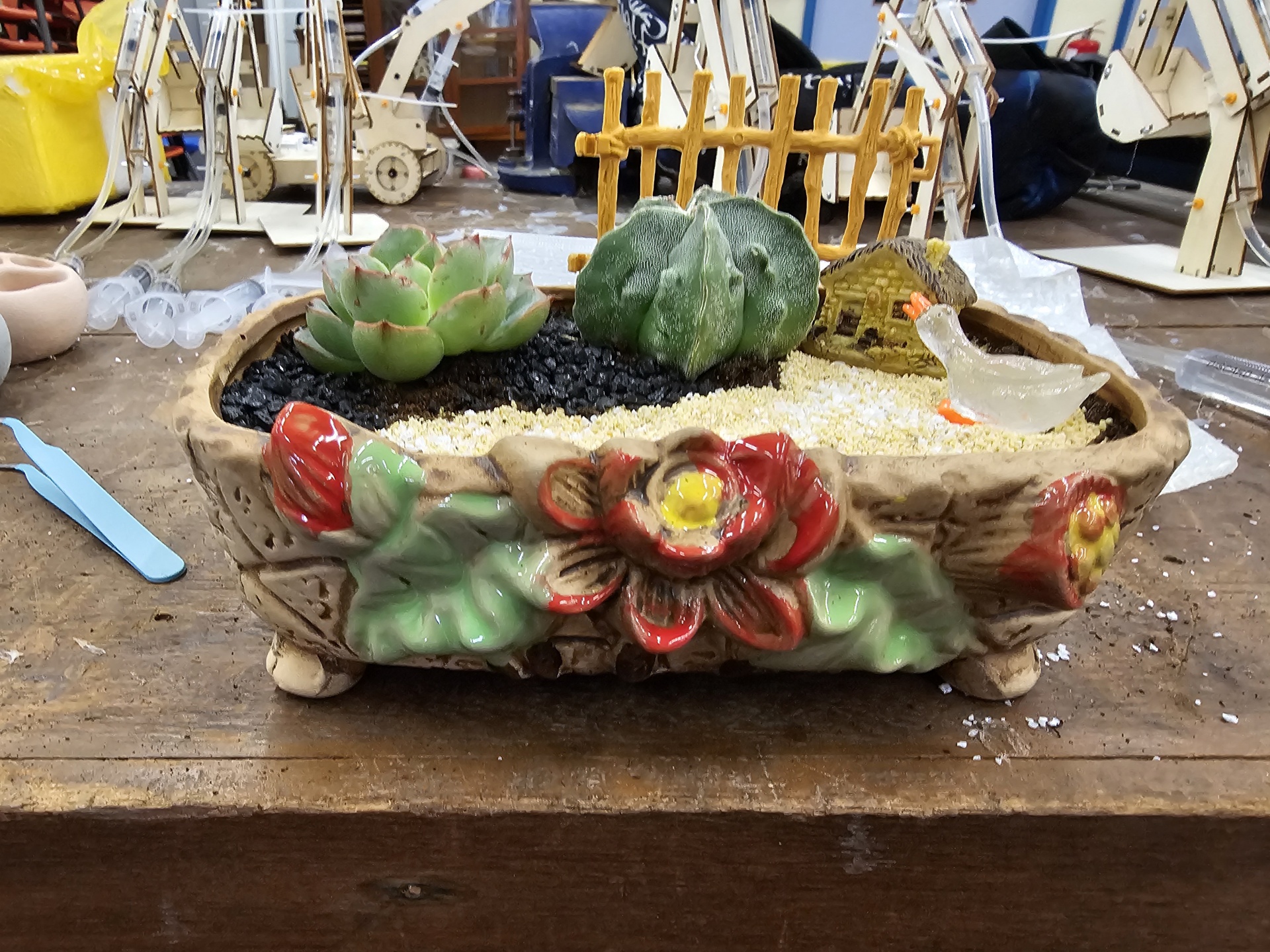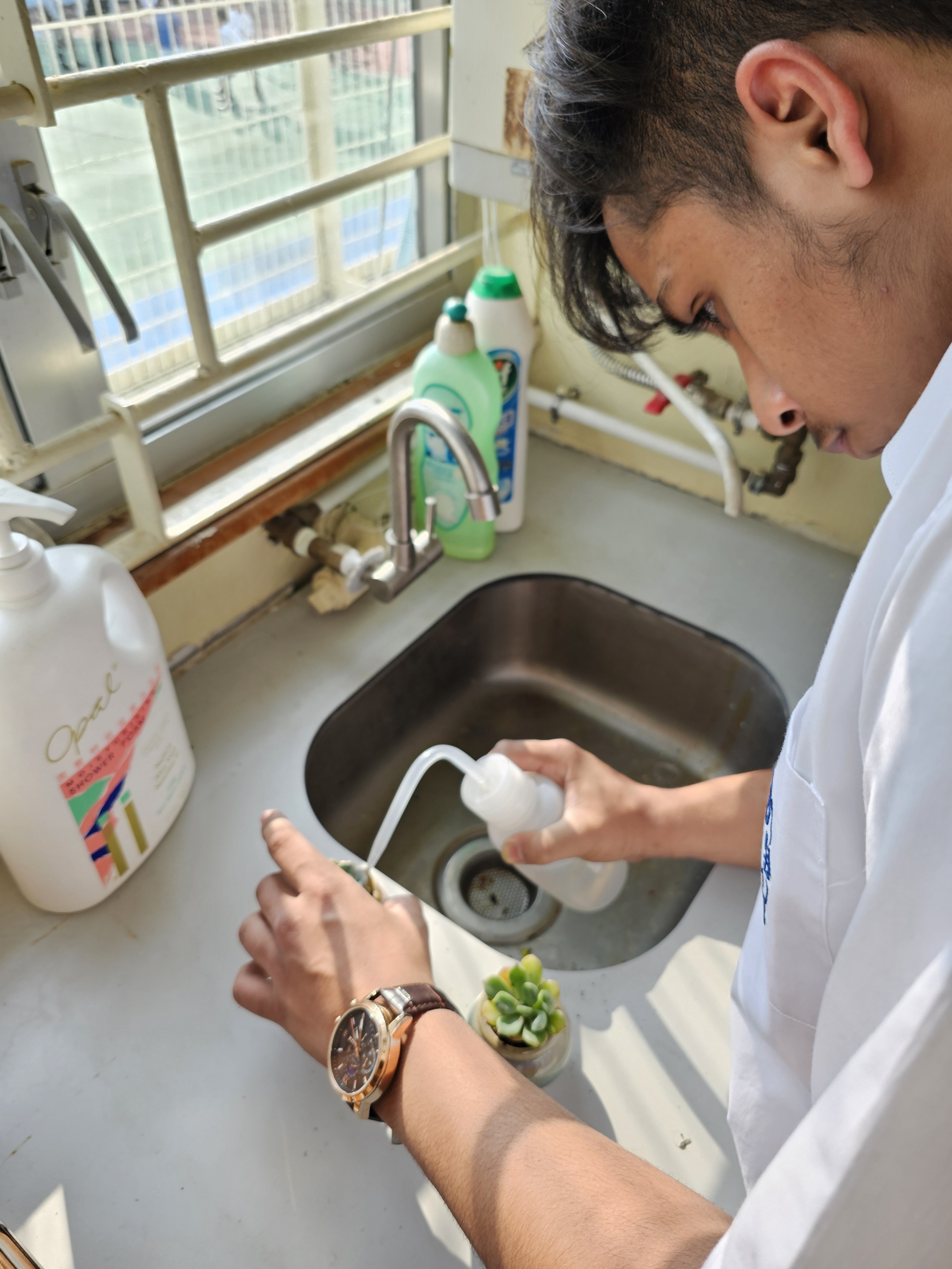 同學認真照顧小盆栽