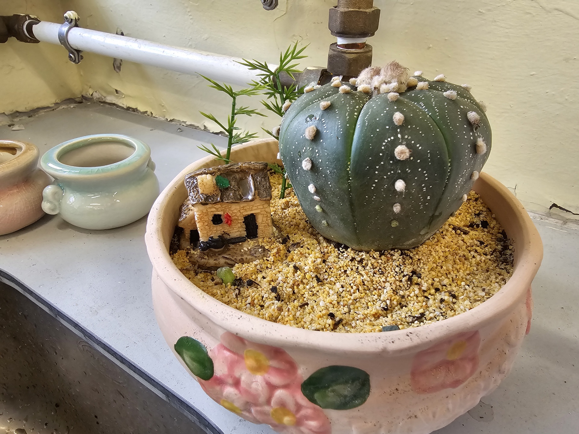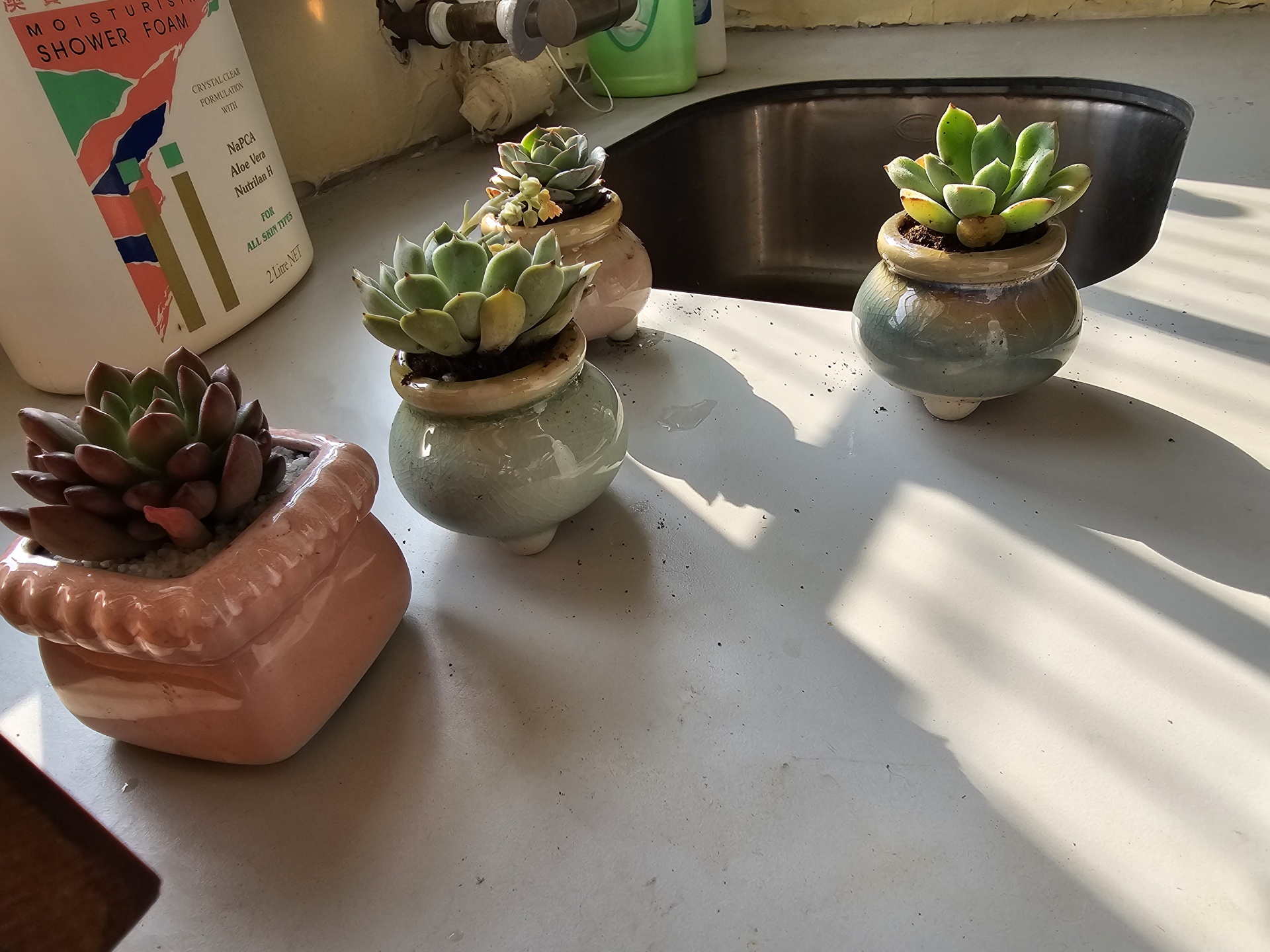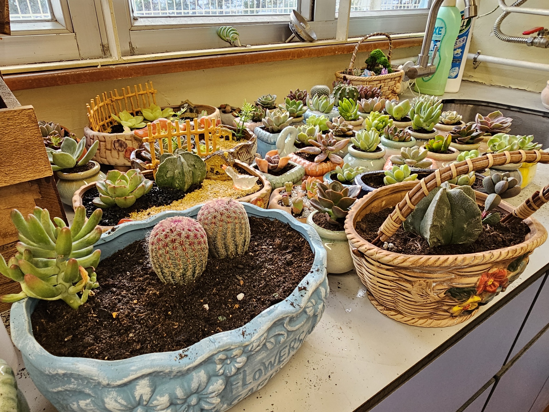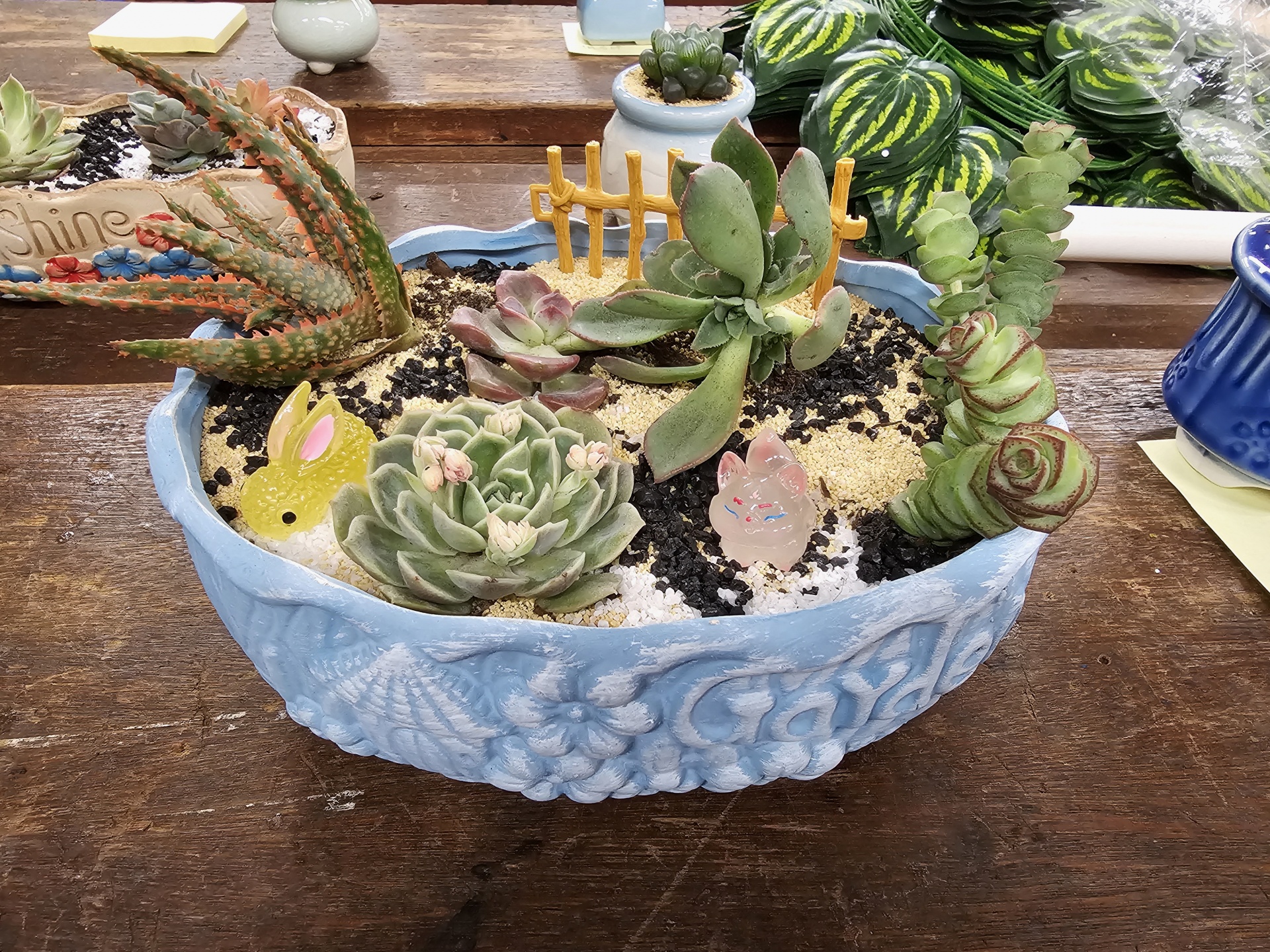 同學認真照顧小盆栽