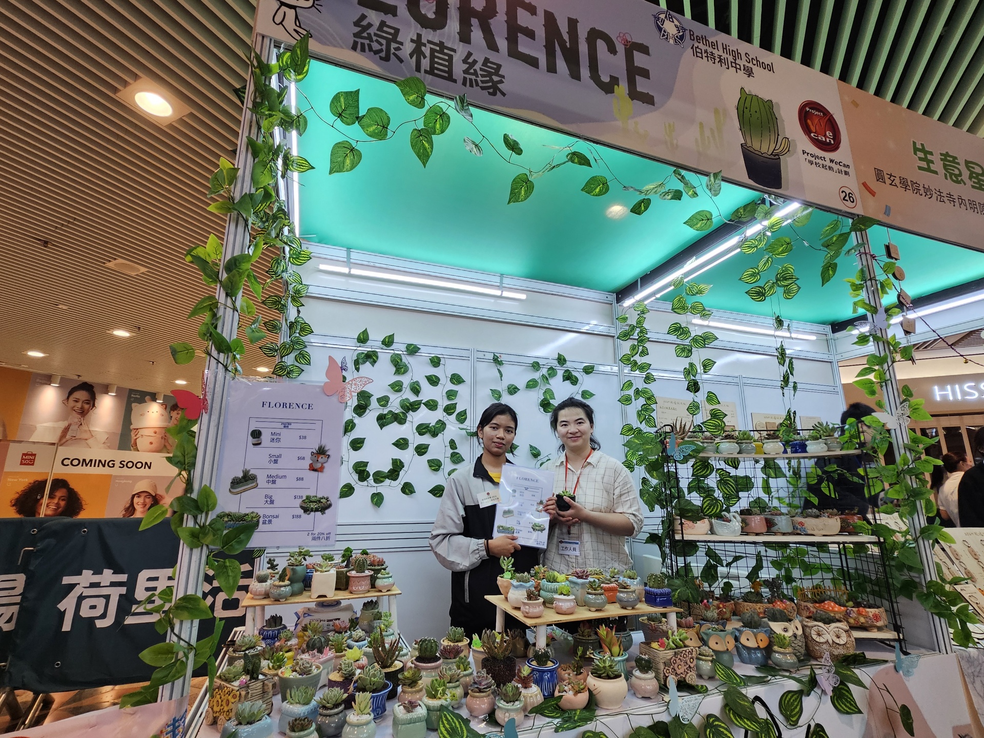 本校企會財科組學生於 2024 年 3 月 22 日至 3 月 24日參加「趁墟做老闆 2024」展銷活動,售賣特色小盆栽,學生組成學生公司「綠植緣」嘗試創業,商品幾近售罄,感謝各方支持。