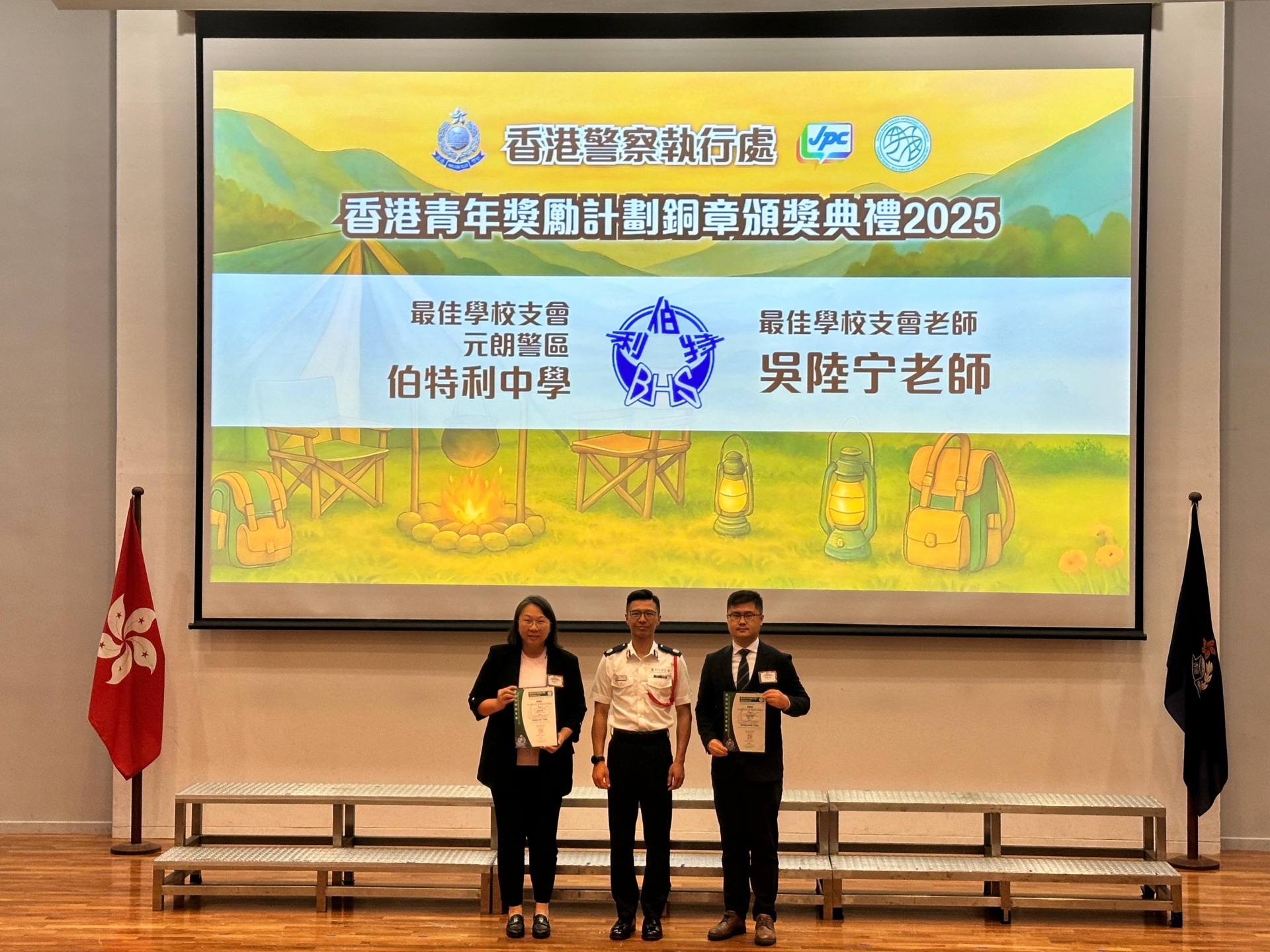伯特利中學於2025年6月6日首次參加香港警察執行處舉辦的香港青年獎勵計劃銅章頒獎典禮,並在過去的活動中表現卓越。我校在活動中榮獲「最傑出學校支會(元朗區)」的殊榮,展現了我們對青少年教育的承諾。