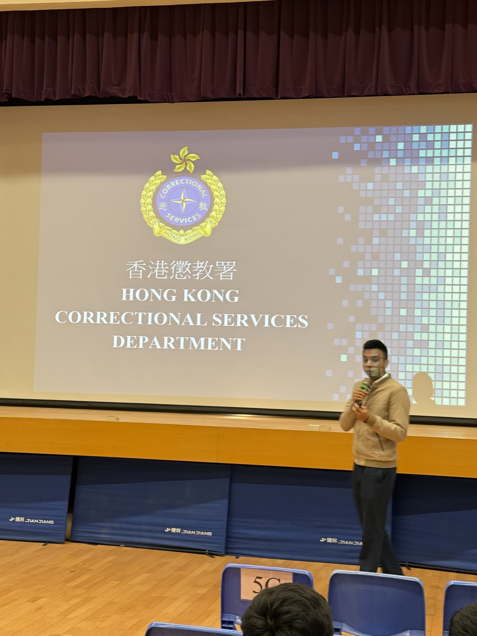 中六同學於11月21日參加懲教署舉辦之到校職業講座,由懲教主任(人力資源)黃華威先生(Mr. TEJNANI Ravi )主講,向同學講述懲教署的工作、入職要求及晉升階梯。