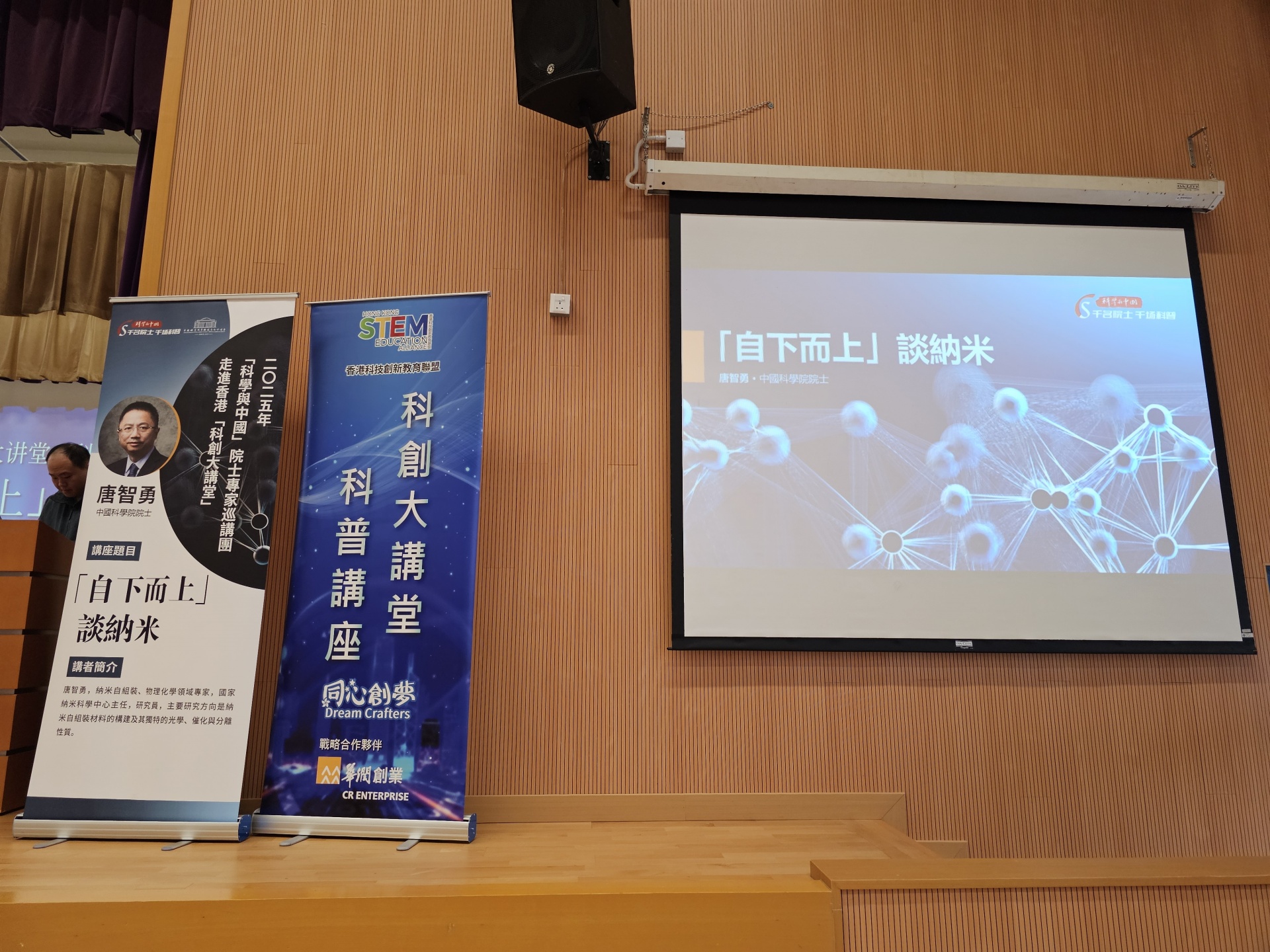 中國科學院院士唐智勇教授到訪本校與學生分享科學研究及學習方法。唐院士更鼓勵準備入讀本校的準中一生要打好學習的基礎, 有助在各科的學習上更上一層樓。