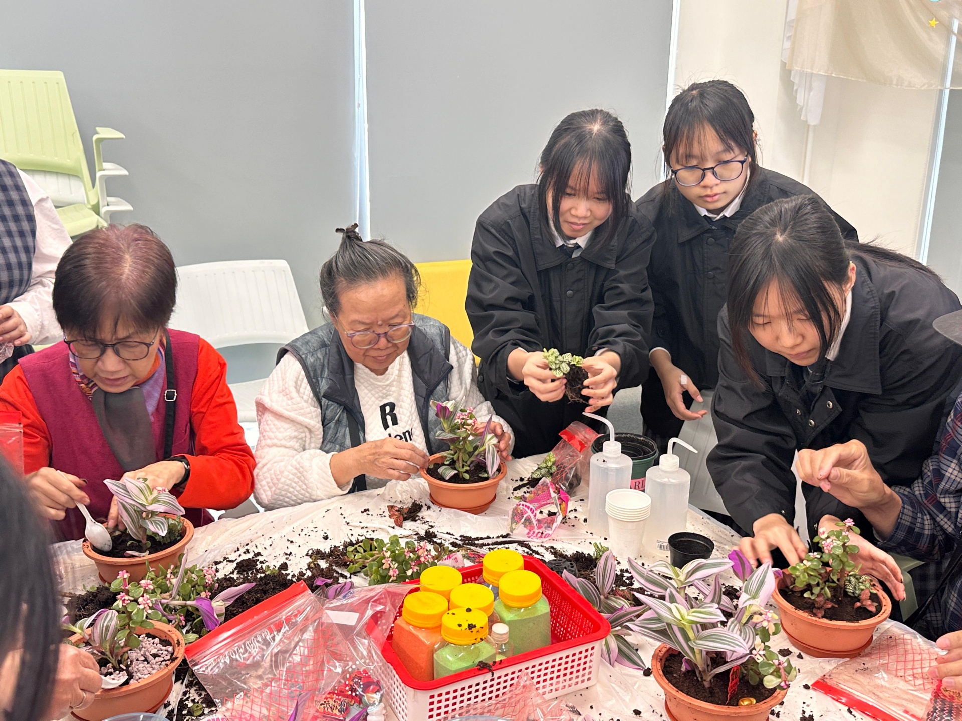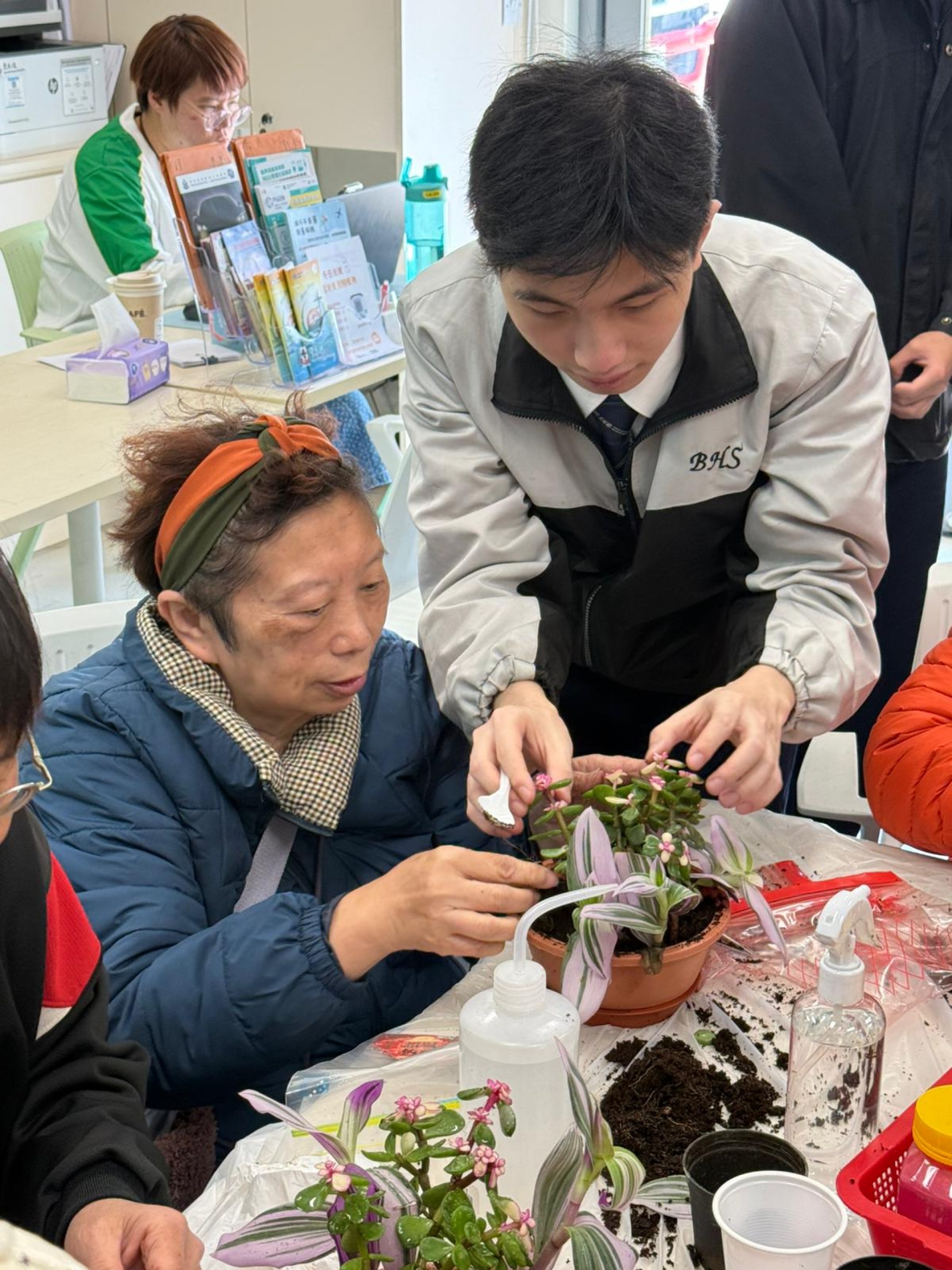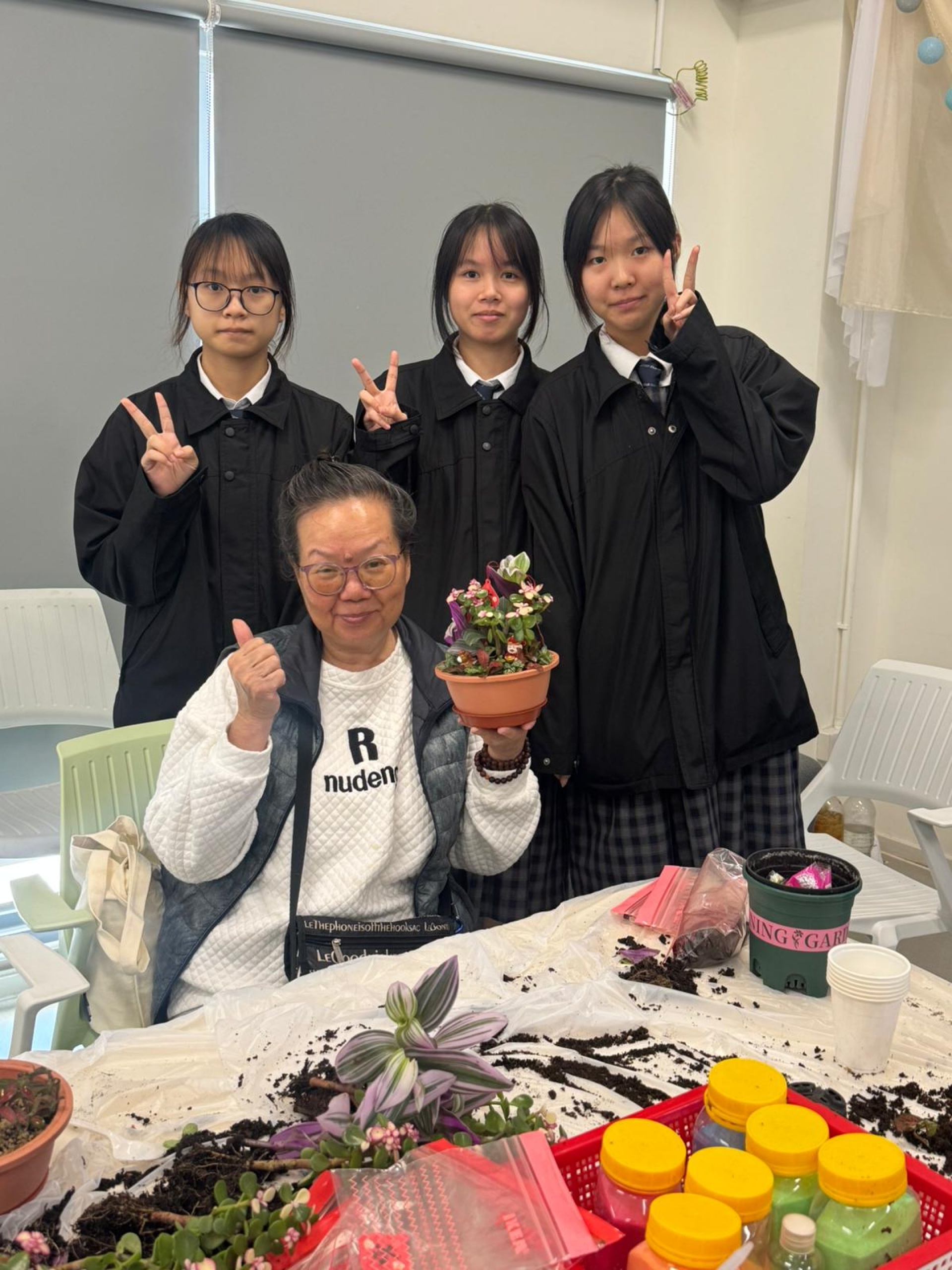 在2月2日,輔導組帶領5B班學生前往元朗攸壆路簡約公屋進行長者探訪義工服務。此次活動的主要內容為製作新年迷你盆栽,在與長者的互動過程中,學生不僅學習到盆栽的製作技巧,還能傳遞新年的祝福。透過這次探訪,學生深化了對關懷和愛心重要性的理解,增強了對社會的責任感,同時學會了如何與長者有效溝通。