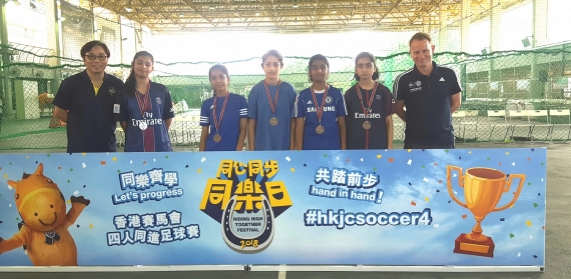 本校女子足球隊於復活節期間參加了由香港賽馬會,曼聯足球學校及香港足球總會合辦的"四人同進足球賽"(HKJC Soccer 4),並入圍碗賽(School Girls Riding High Bowl),勇奪季軍。