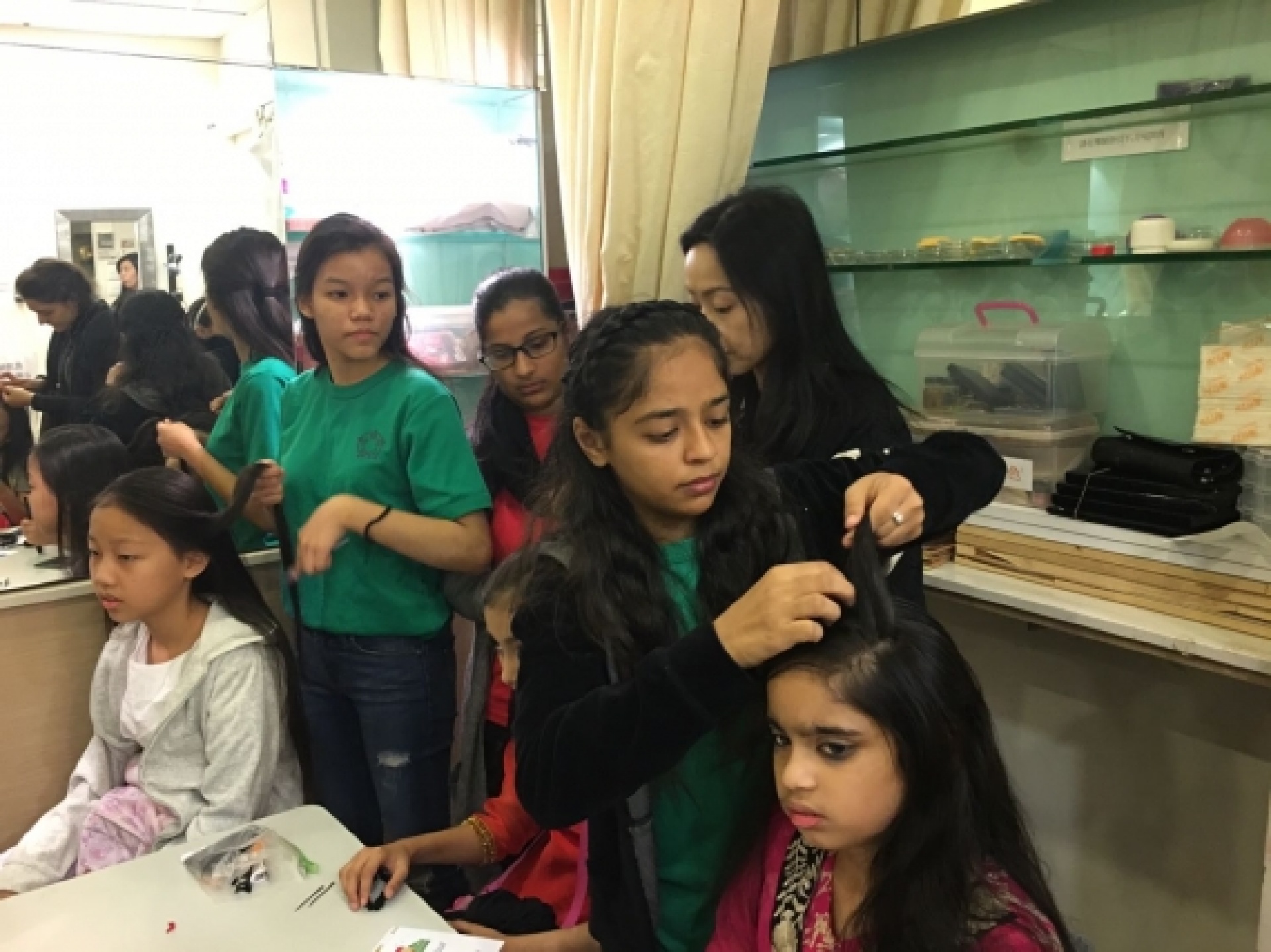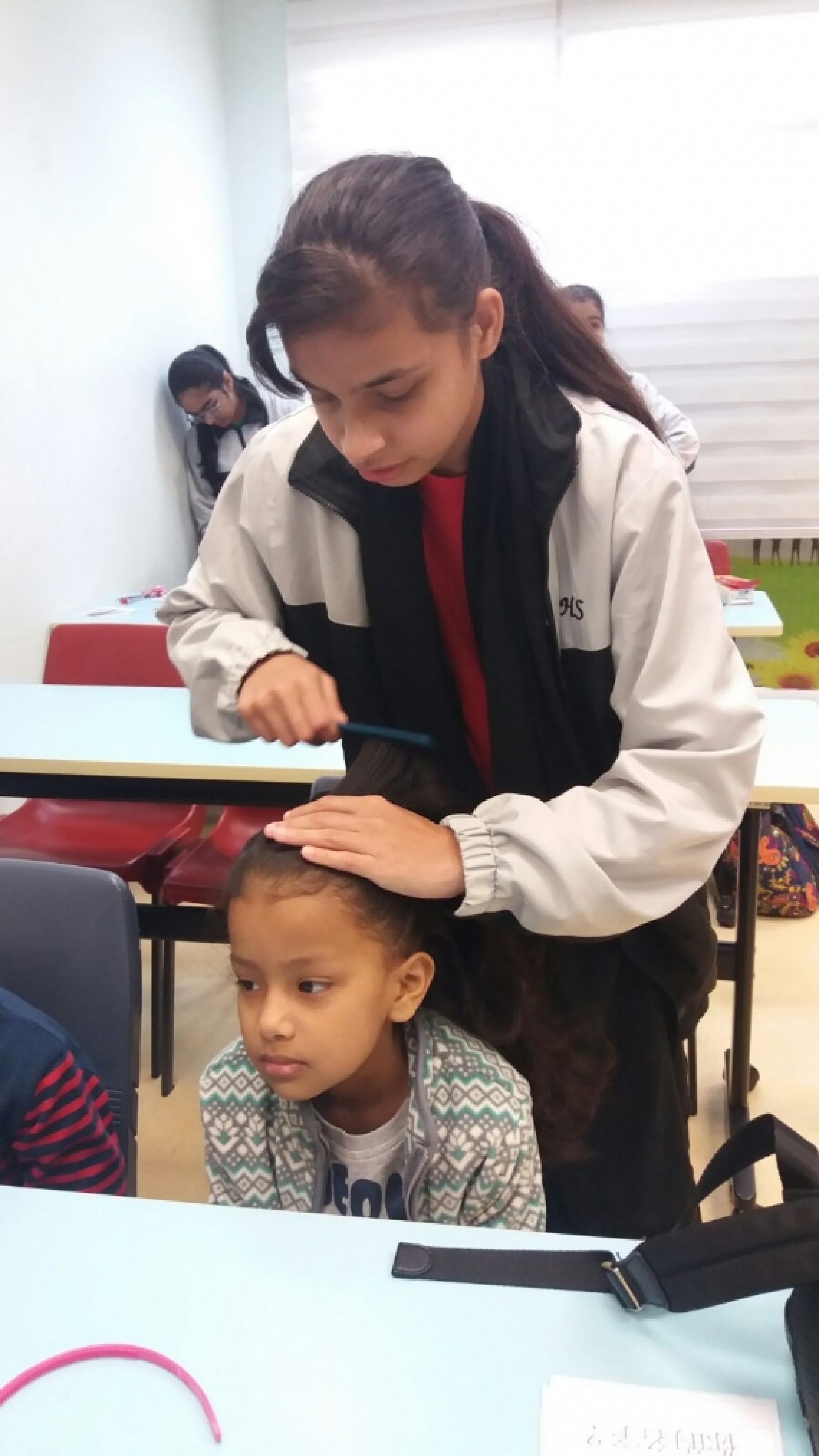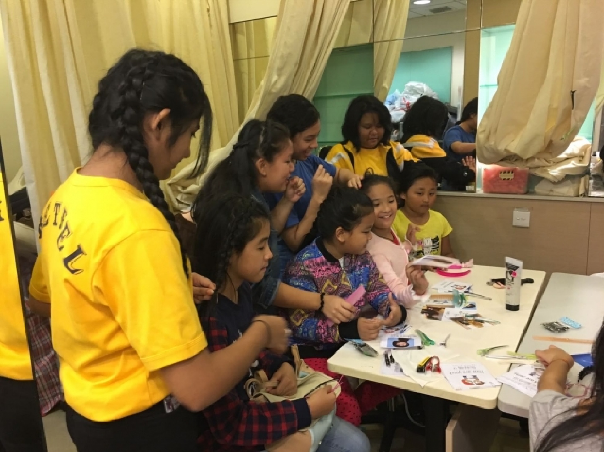 本校非華語學生參加由「童軍知友社」舉辦的「愛與夢飛行計劃」義工活動,學生於青少年中心為小朋友進行髮型設計,活動中學生學會尊重和照顧別人,提高溝通技巧。