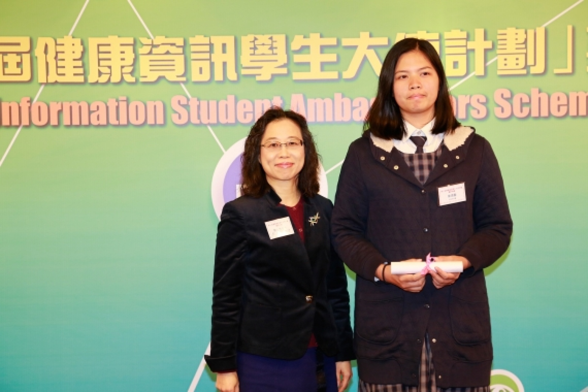 陳靖鑾同學參加電影報刊及物品管理處舉辦的第七屆健康資訊學生大使計劃及其相關活動,日前出席計劃的嘉許典禮。