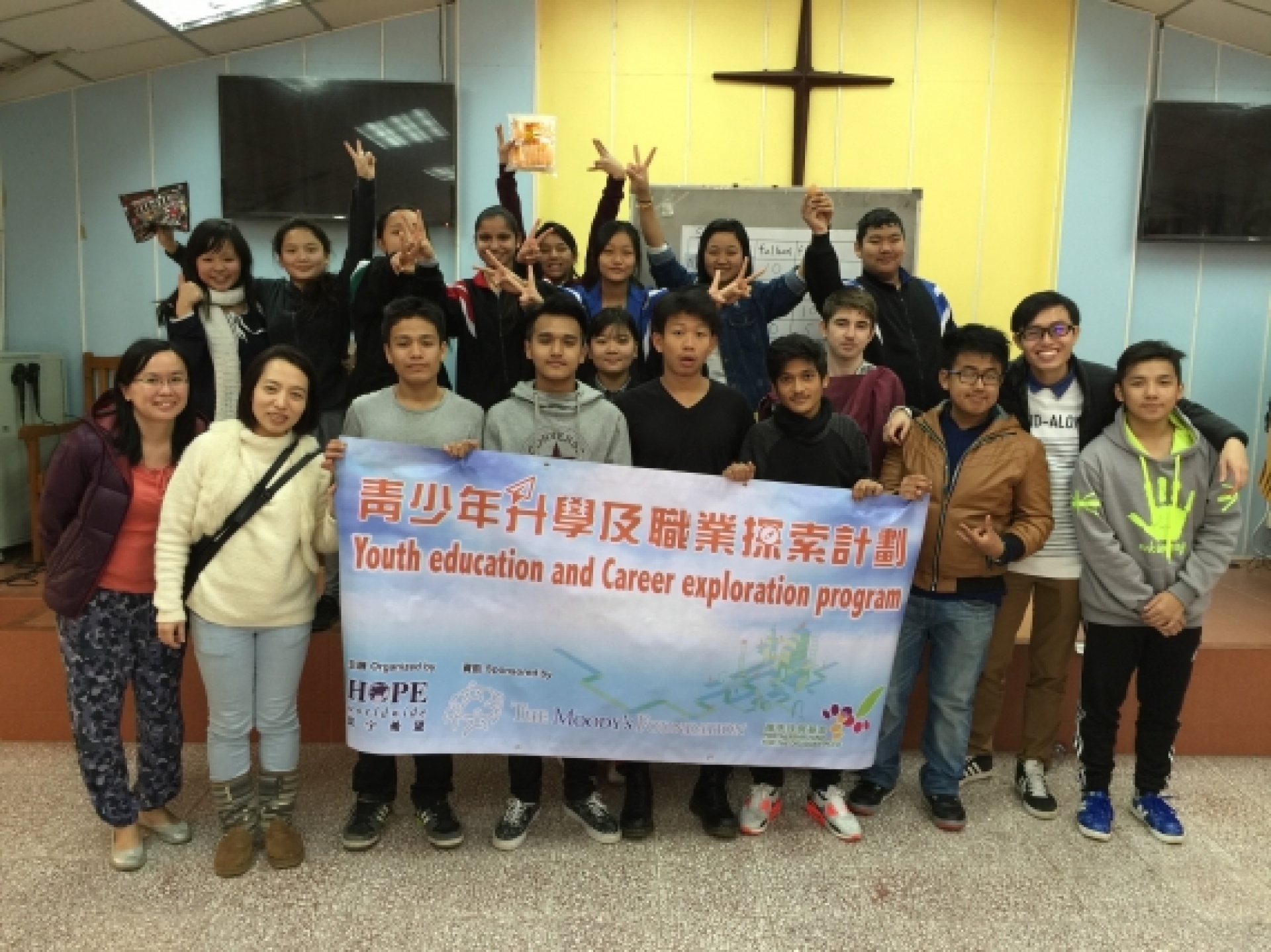 升學及就業輔導組於2016年2月19日至20日帶領15位非華語學生參加寰宇希望2日1夜生涯規劃訓練營。學生透過不同的活動,提升學生的溝通技巧、團隊精神以及自我反思的能力,並於歷奇訓練中學習突破自我。