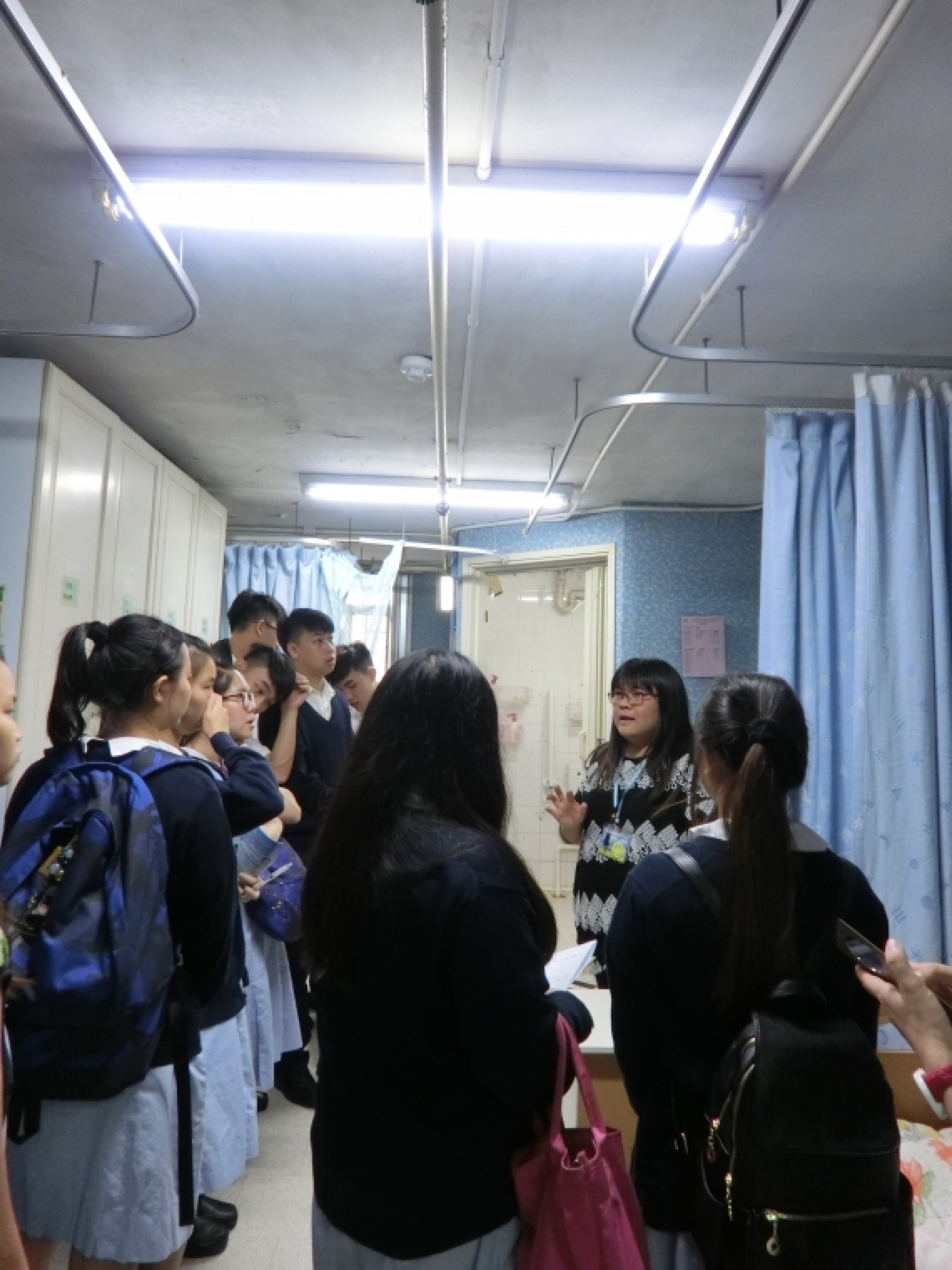 升學及就業輔導組於2015年10月16日(星期五)帶領12位護理班學生參觀基督教香港信義會山景長者護理院暨健頤會;讓學生知道更多護理行業的使命以及不同護理職級的工作和崗位,也了解到護理員的入行方法和待遇等資訊,從而讓學生探索更多有關個人的職業興趣和方向。