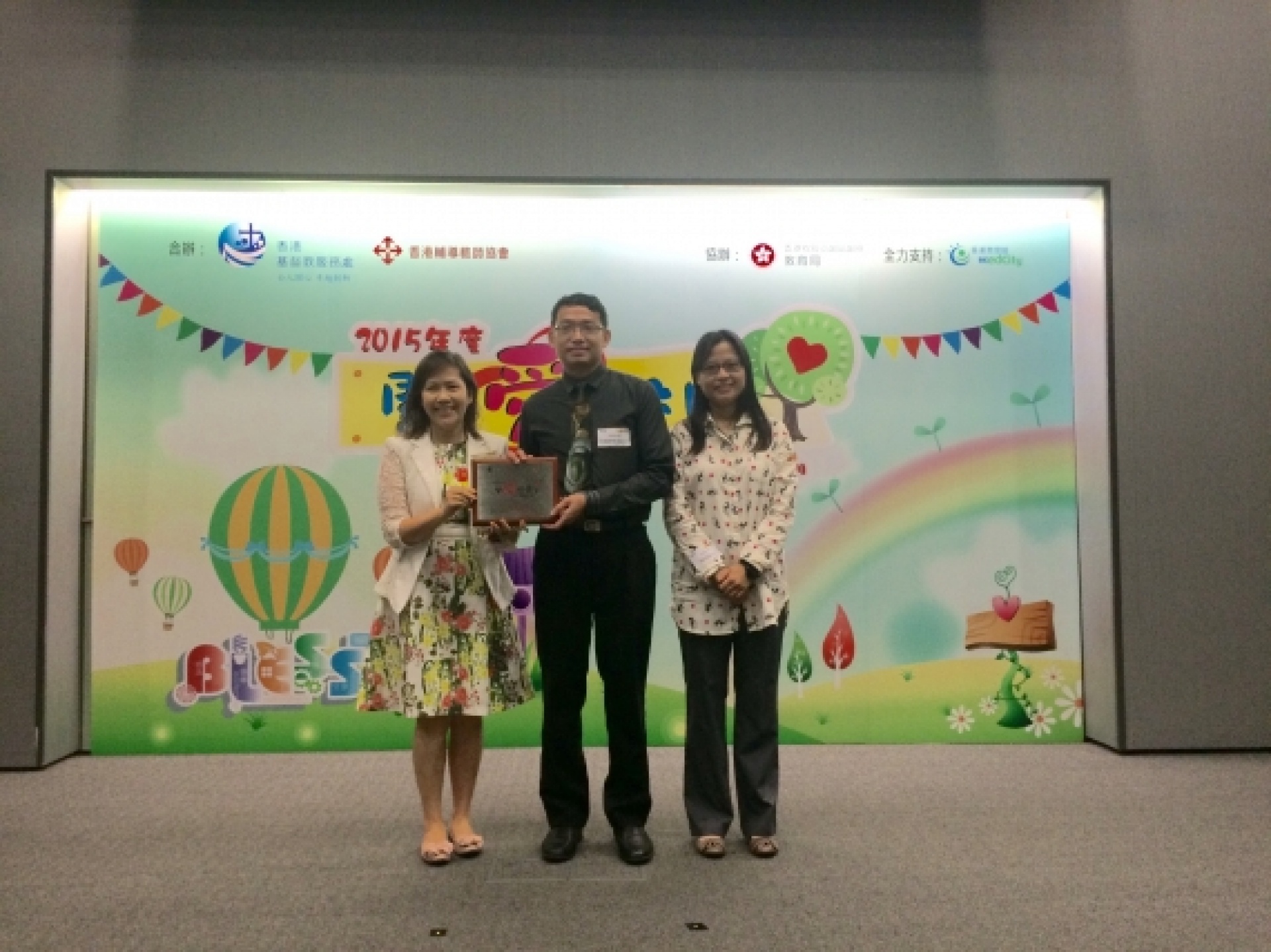 由香港基督教服務處(Hong Kong Christian Service)主辦、香港輔導教師協會、香港教育城及教育局協辦之2015年度關愛校園獎勵計劃,當中本校參與「牽引共融」主題大獎,從眾多學校中入圍第二輪評審,經評審會議後,評審團一致欣賞本校在推動共融工作上所作出的努力,充份體現關愛校園的精神,故授予本校「卓越關愛校園 之 牽引共融」優異獎,並於7/5/2016頒獎禮接受獎項。