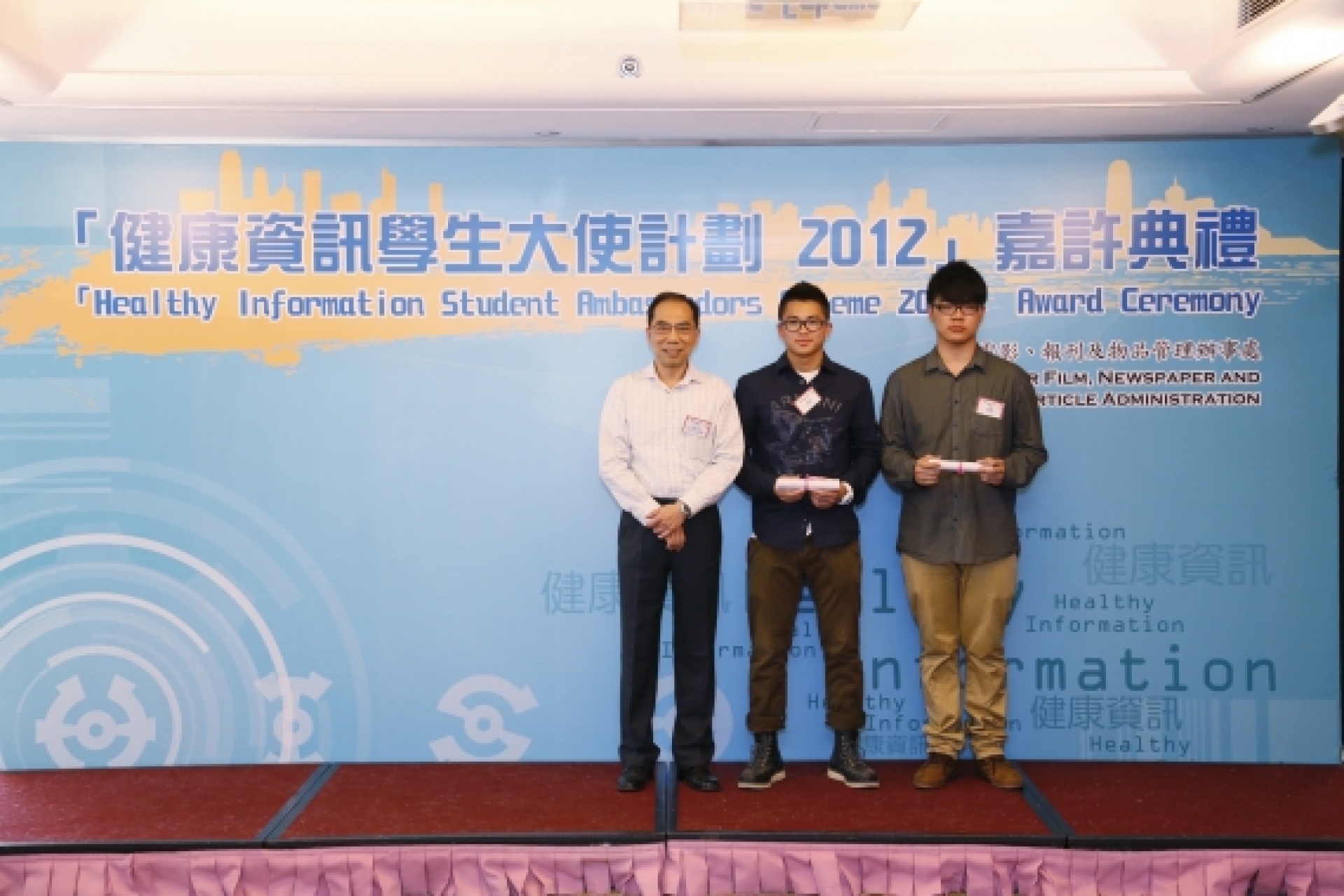 5C班朱雋謙、江耀峰同學,應邀出席「電影報刊及物品管理辦事處」主辦的「第四屆健康資訊大使計畫嘉許典禮」接受嘉許。
