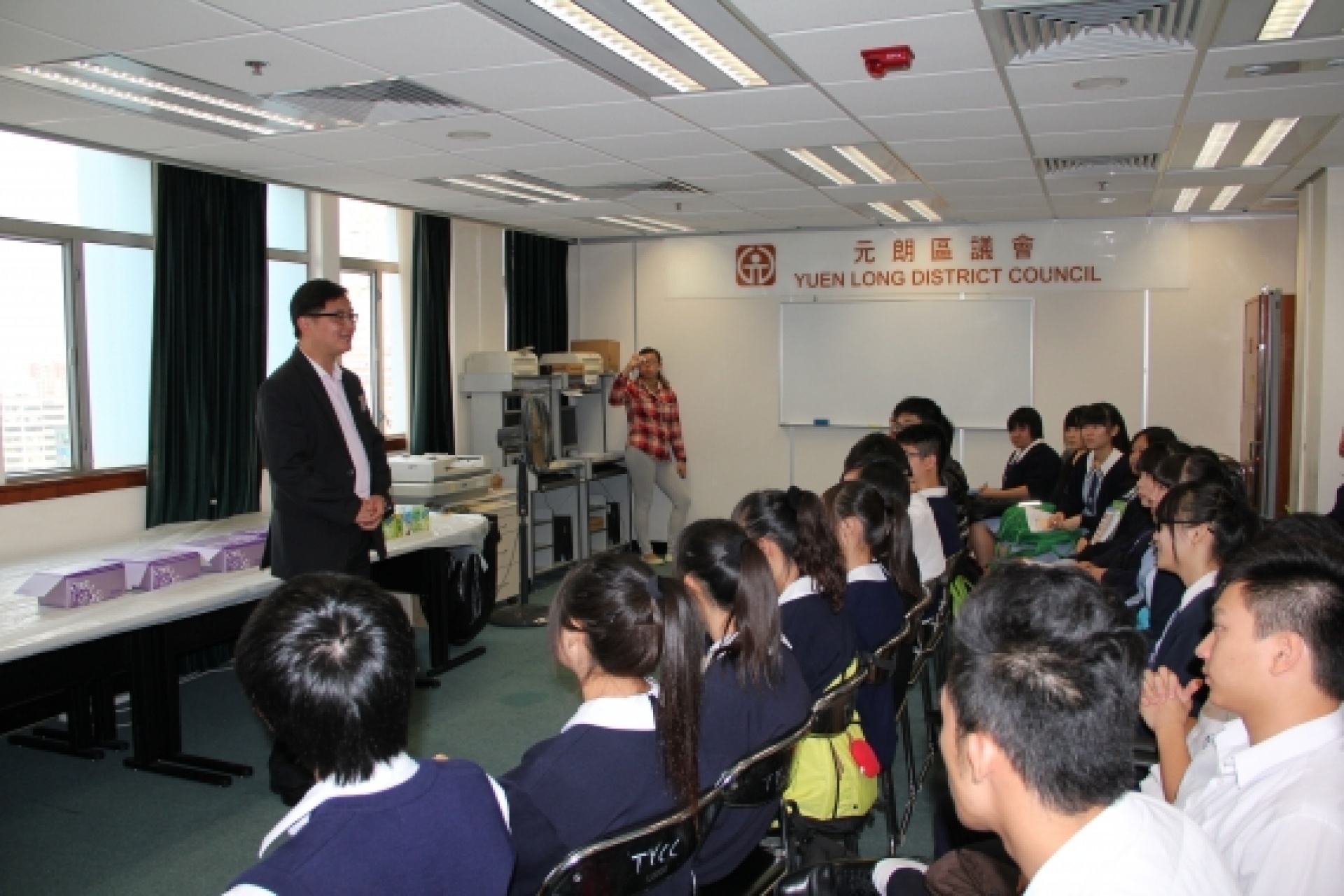 為增加學生對於社會政治參與的認識,同學於二零一二年十一月十二日到元朗區議會旁聽有關「環境改善委員會」會議,會後更與區議員面談。