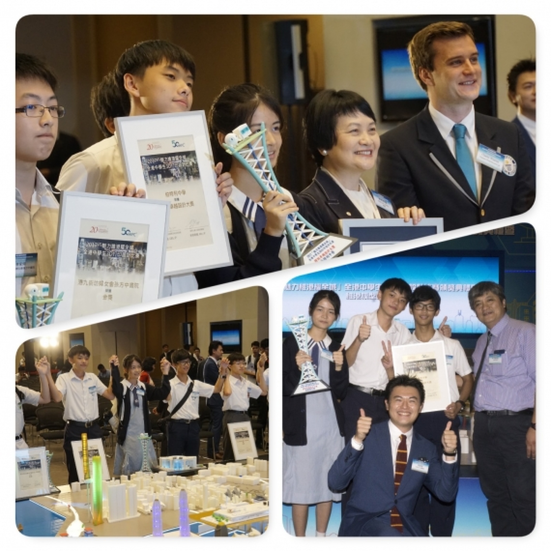 本校三位中二級同學,參加由香港生產力促進局舉辦的「魅力維港耀全城」全港中學生3D打印設計比賽,將東方之珠,飛龍圖案 及 3D全息投影技術融入「信德中心及港澳碼頭」,獲得最高榮譽 - 特別卓越設計大獎。 參賽同學與入圍隊伍及生產力局的專家團隊運用3D打印技術重塑維港兩岸面貌,合力創造健力士世界紀錄。