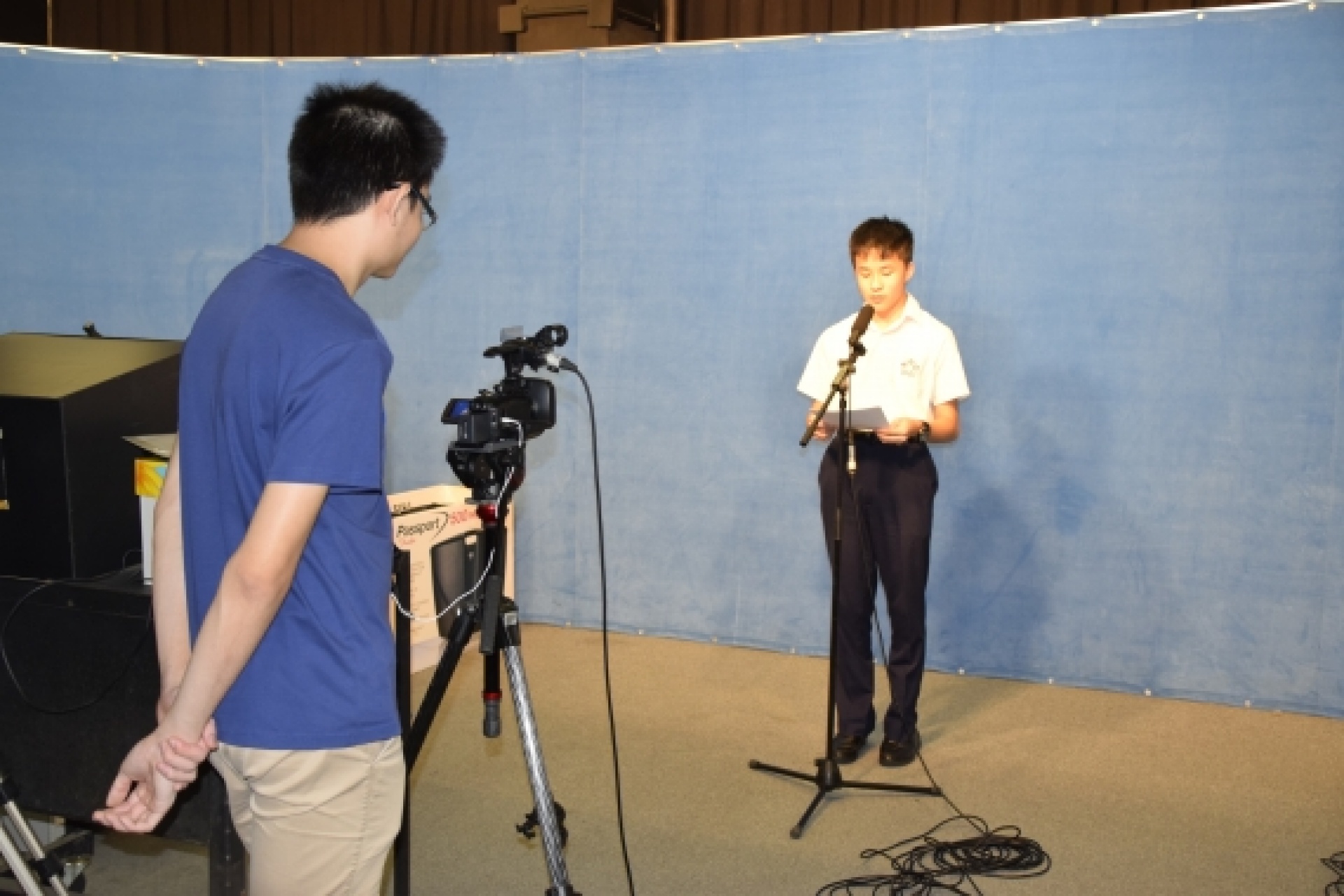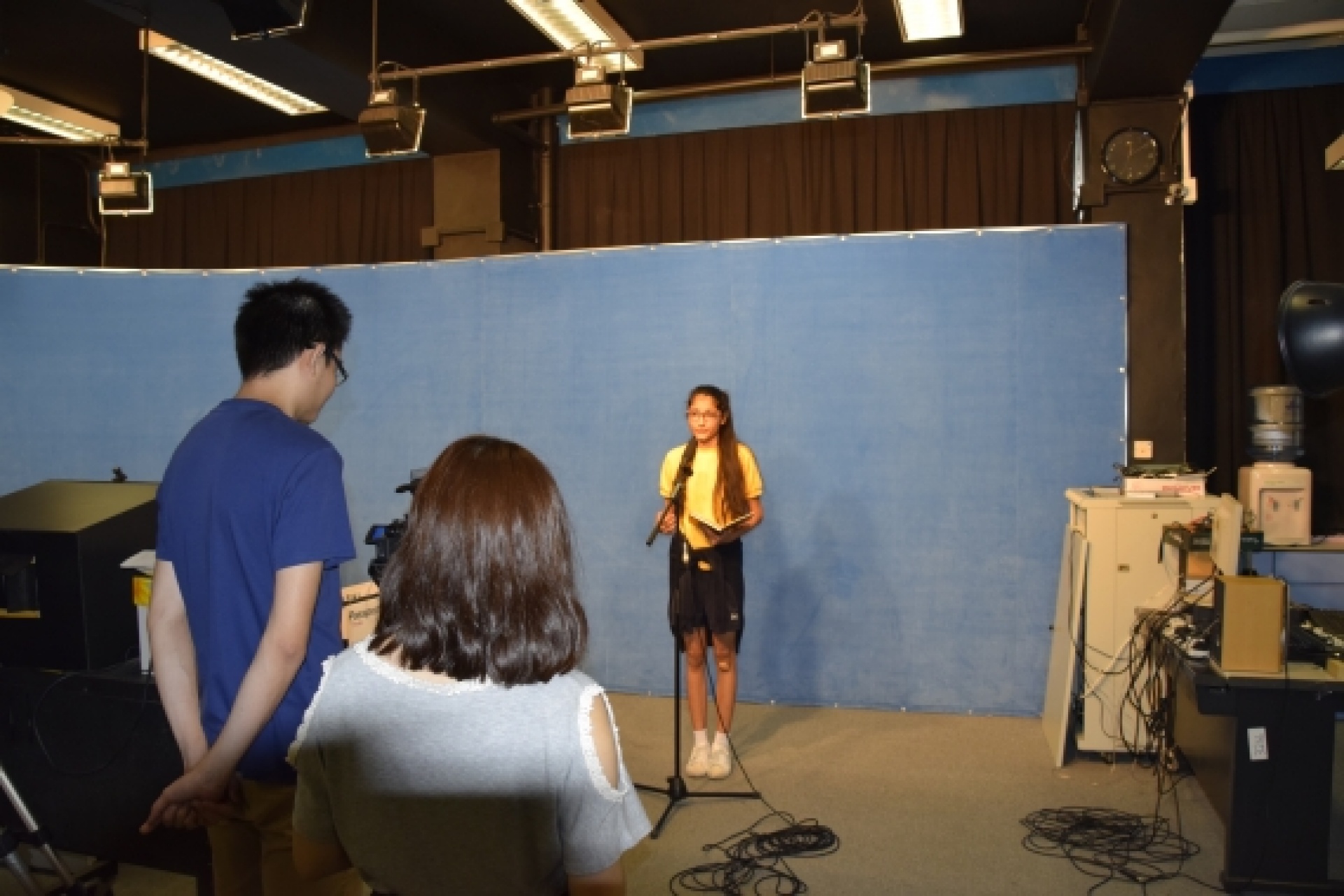 3A鄺永祺同學、4A Mahakdeep Kaur and 6A Gurung Sumenta 參加香港電台舉辦的「The Speaker 全港中學生英語演講比賽2017」。港台的工作人員到校錄影同學的初賽片段。