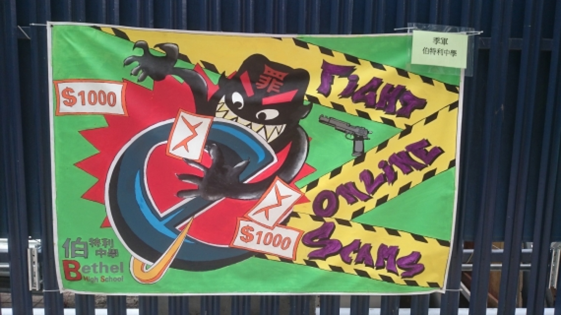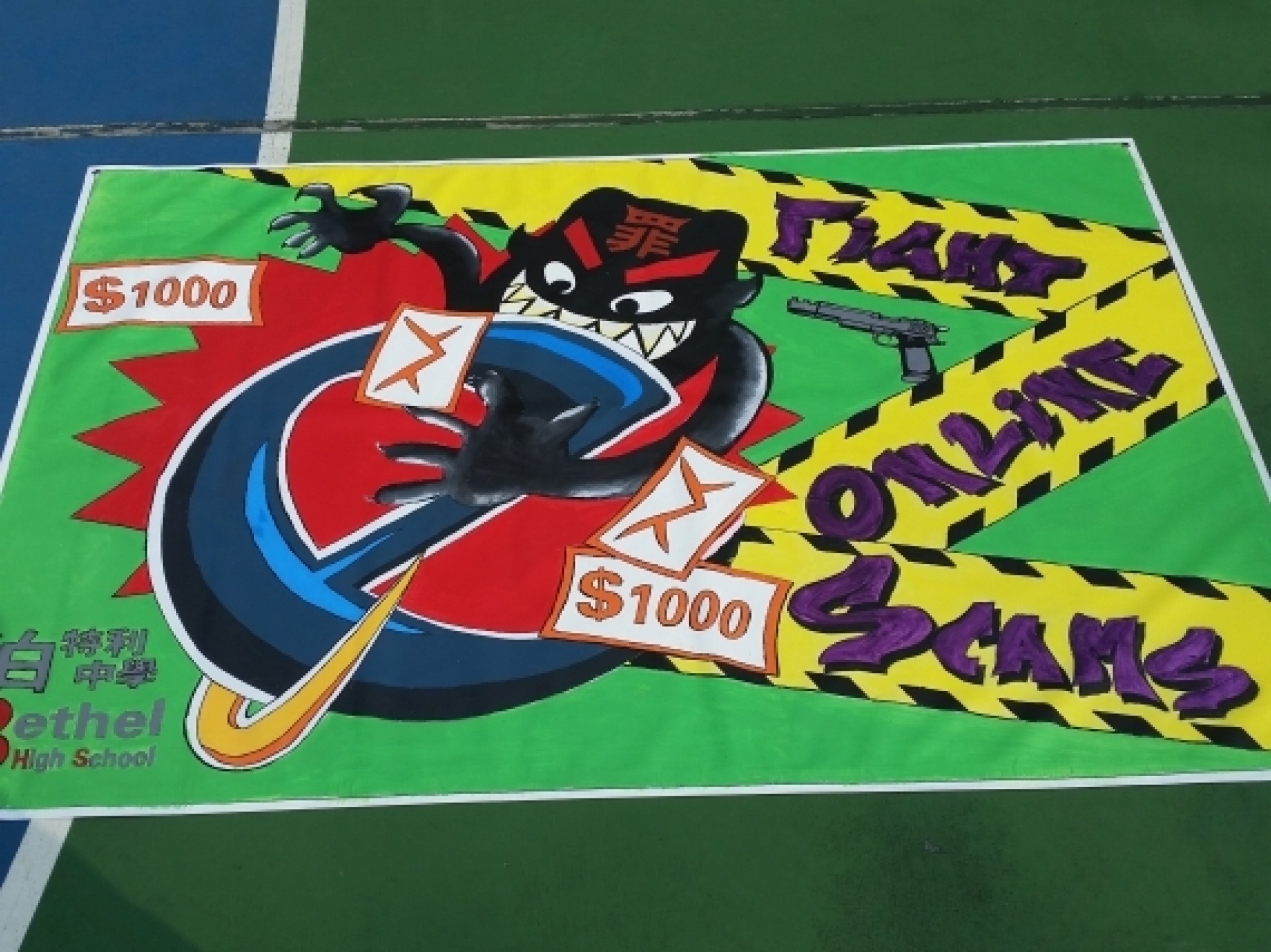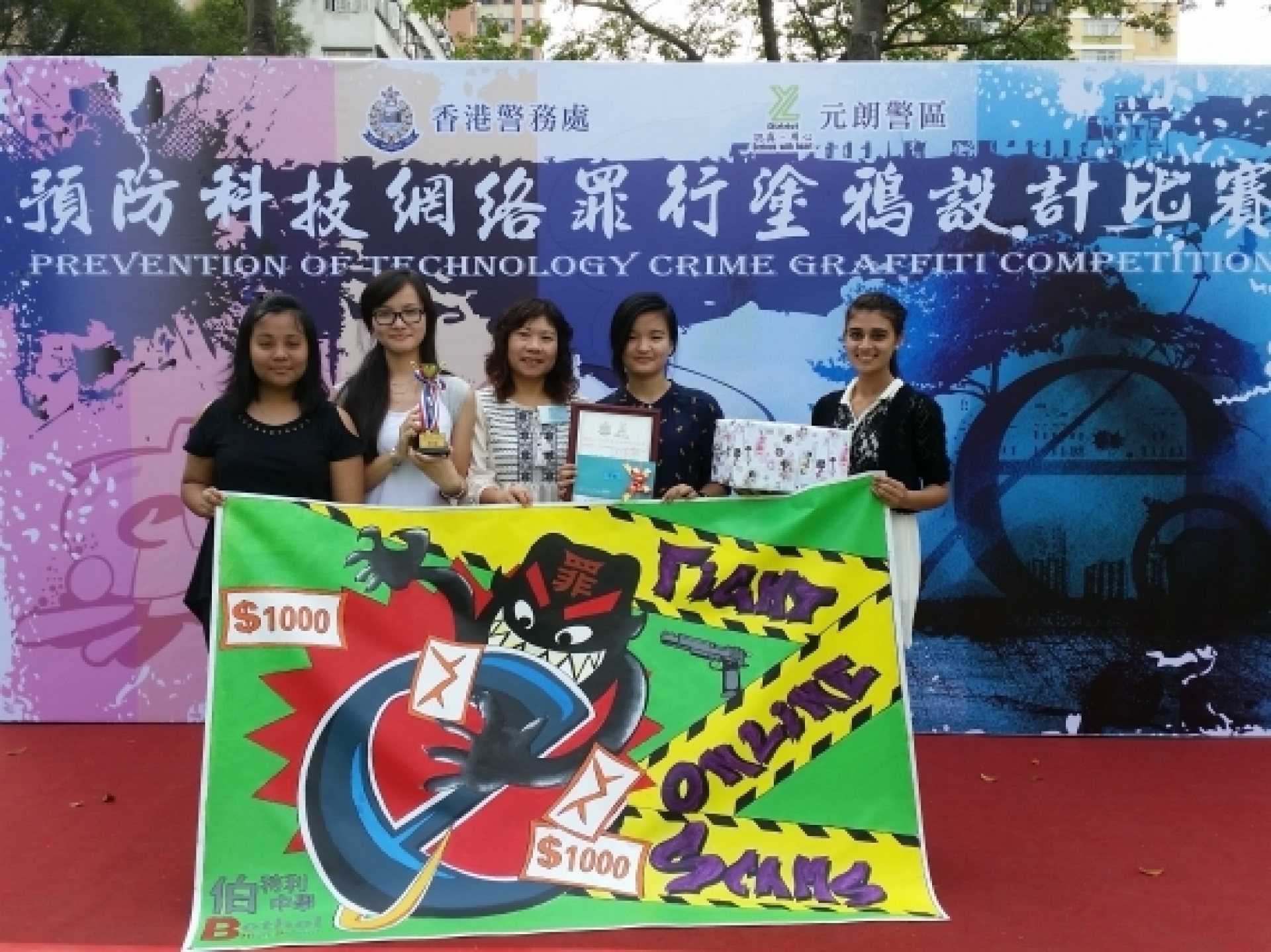 本校少年警訊學會9位同學於11月1日參與由元朗警區所舉辦的【預防科技網絡罪行塗鴉設計比賽】,並榮獲季軍成績,得獎作品將掛於元朗警署門外以作宣傳及推廣用途。