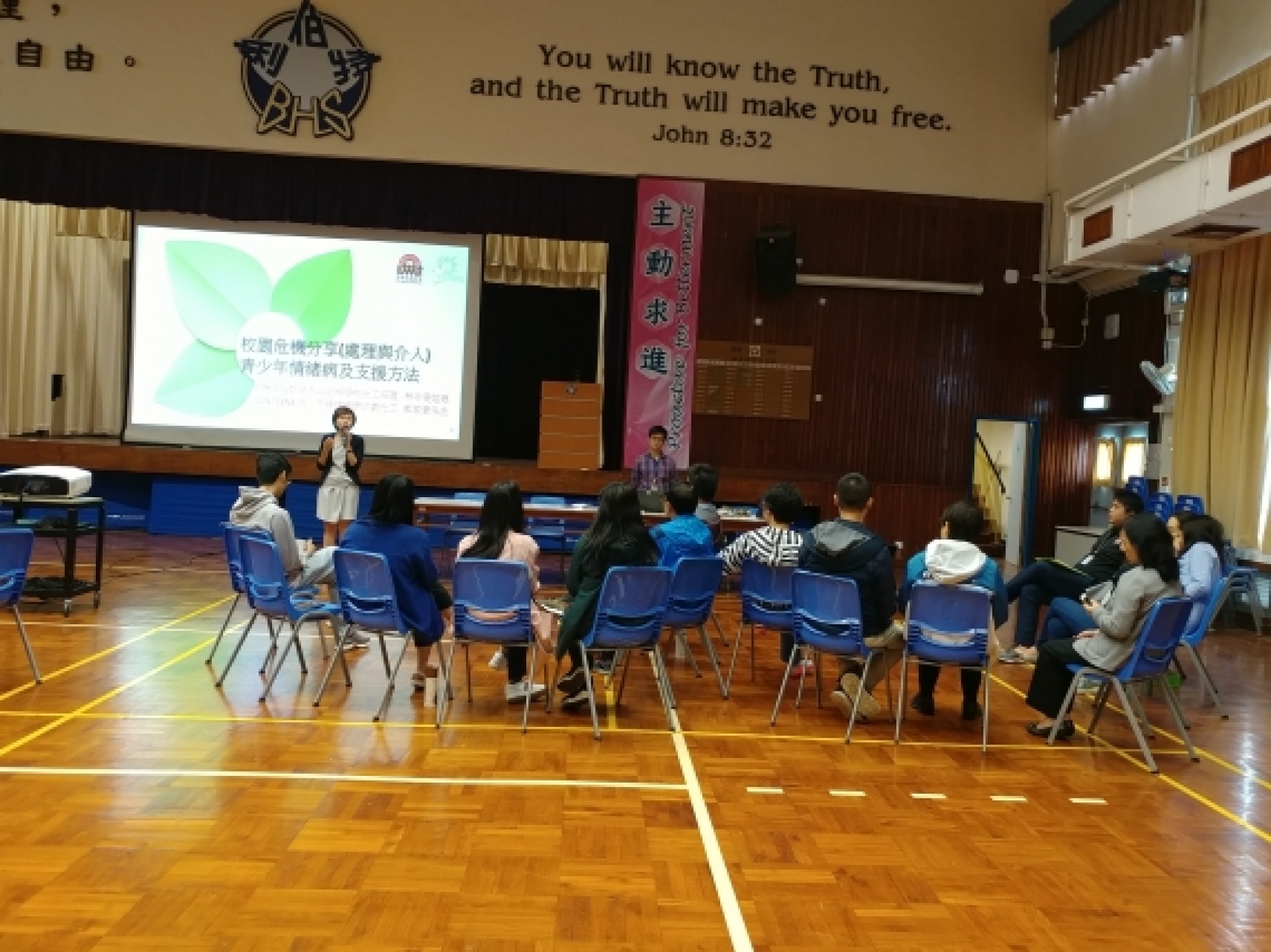 教師發展日上午,聖雅各福群會社工為老師分享「校園危機預防及處理」。老師透過專業交流加強辨識有情緒需要的學生及提供適切支援。