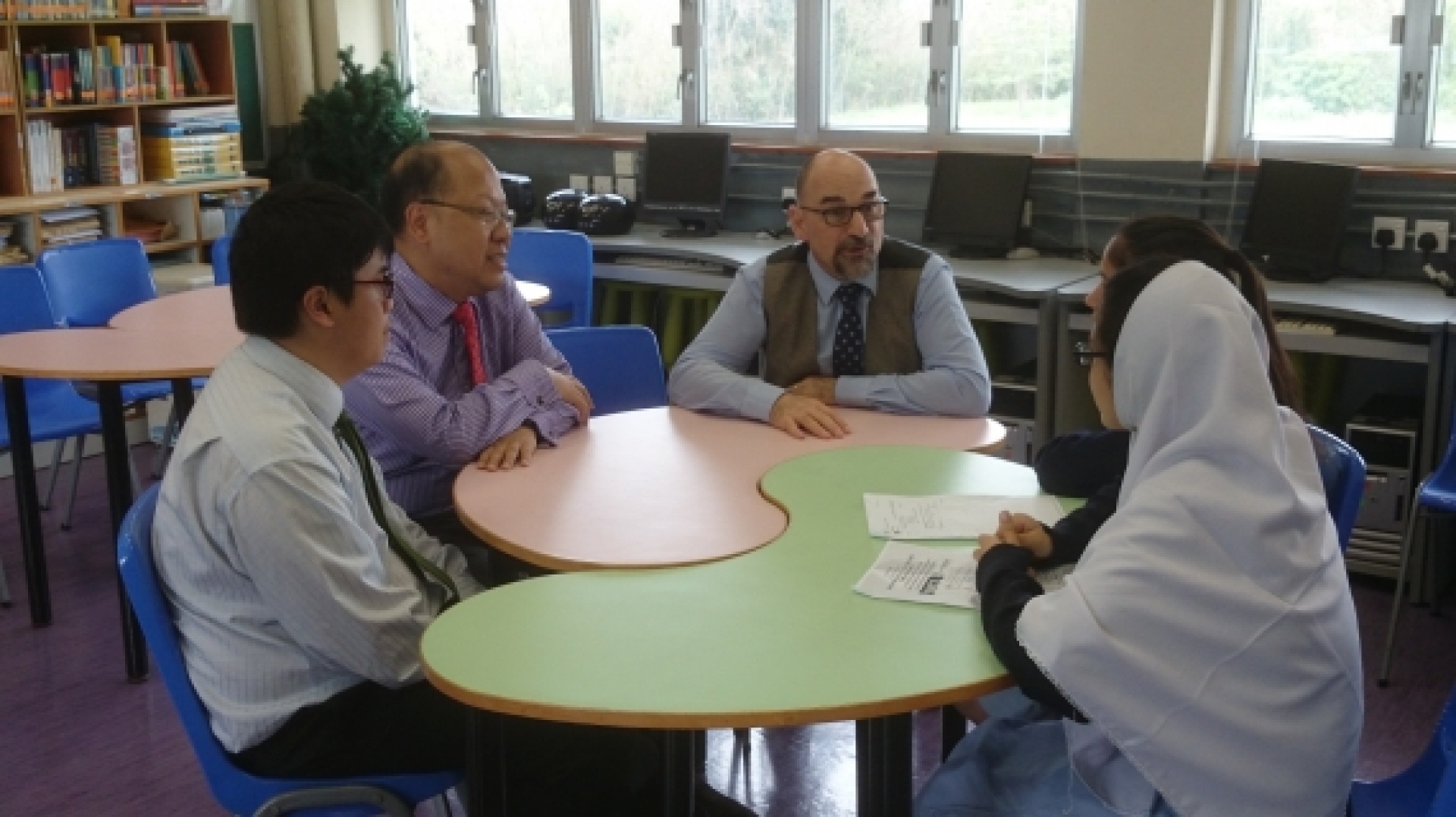 本校積極與外界聯繫,多年來持續與院校協作,建立教師專業學習社群。倫敦大學學院教育研究院Jacek Brant博士及香港大學教育學院彭明輝博士於5月12日到訪本校,與本校教師交流經驗,分享教育研究新動態。兩位學者並於席間觀課,接受學生大使訪問,師生均感獲益良多。