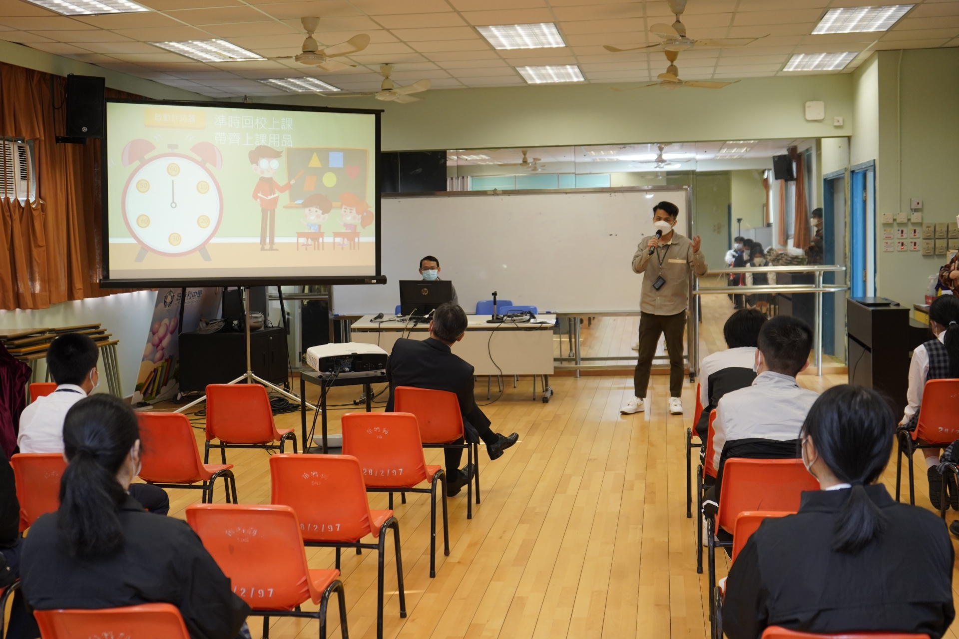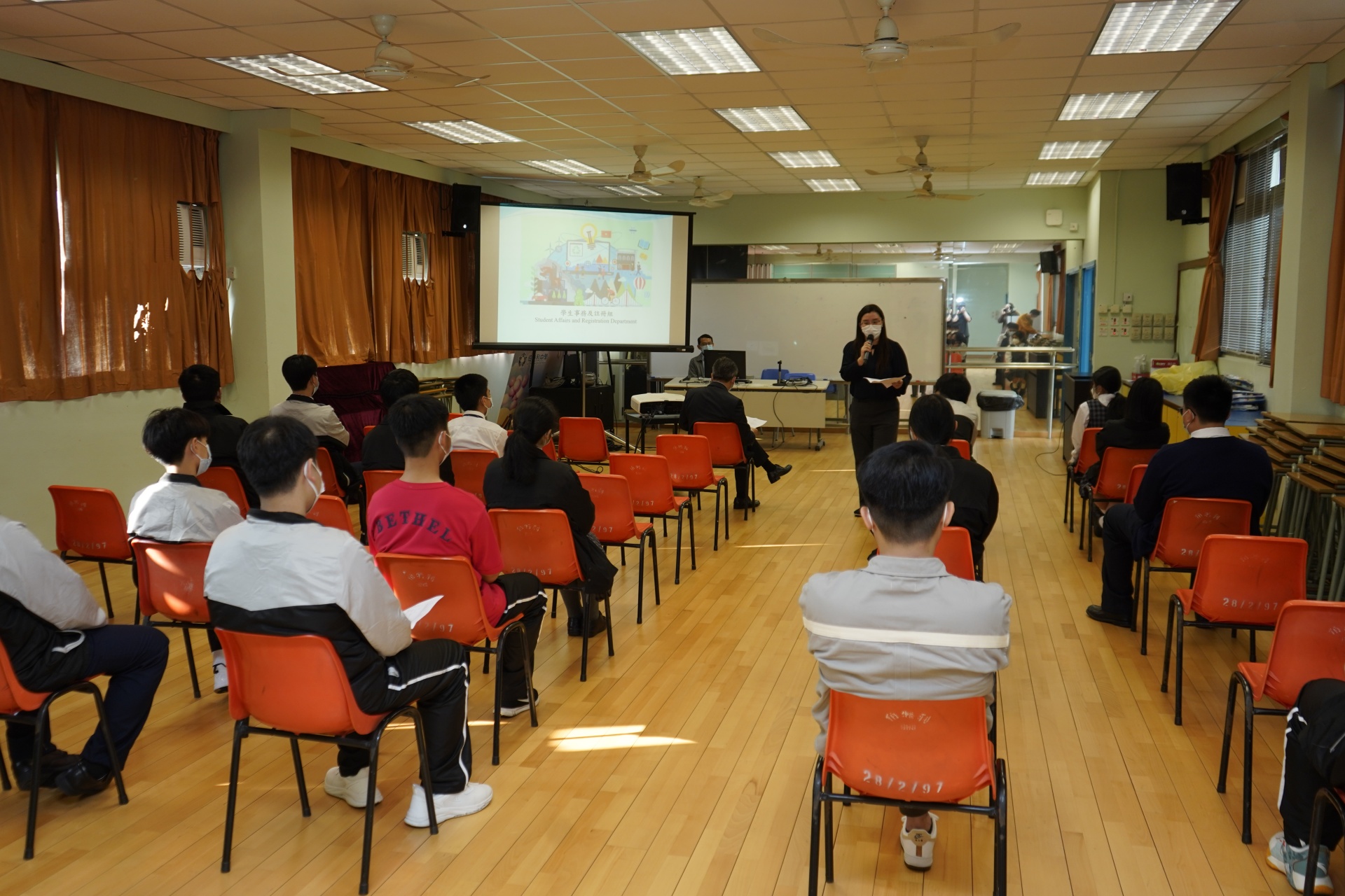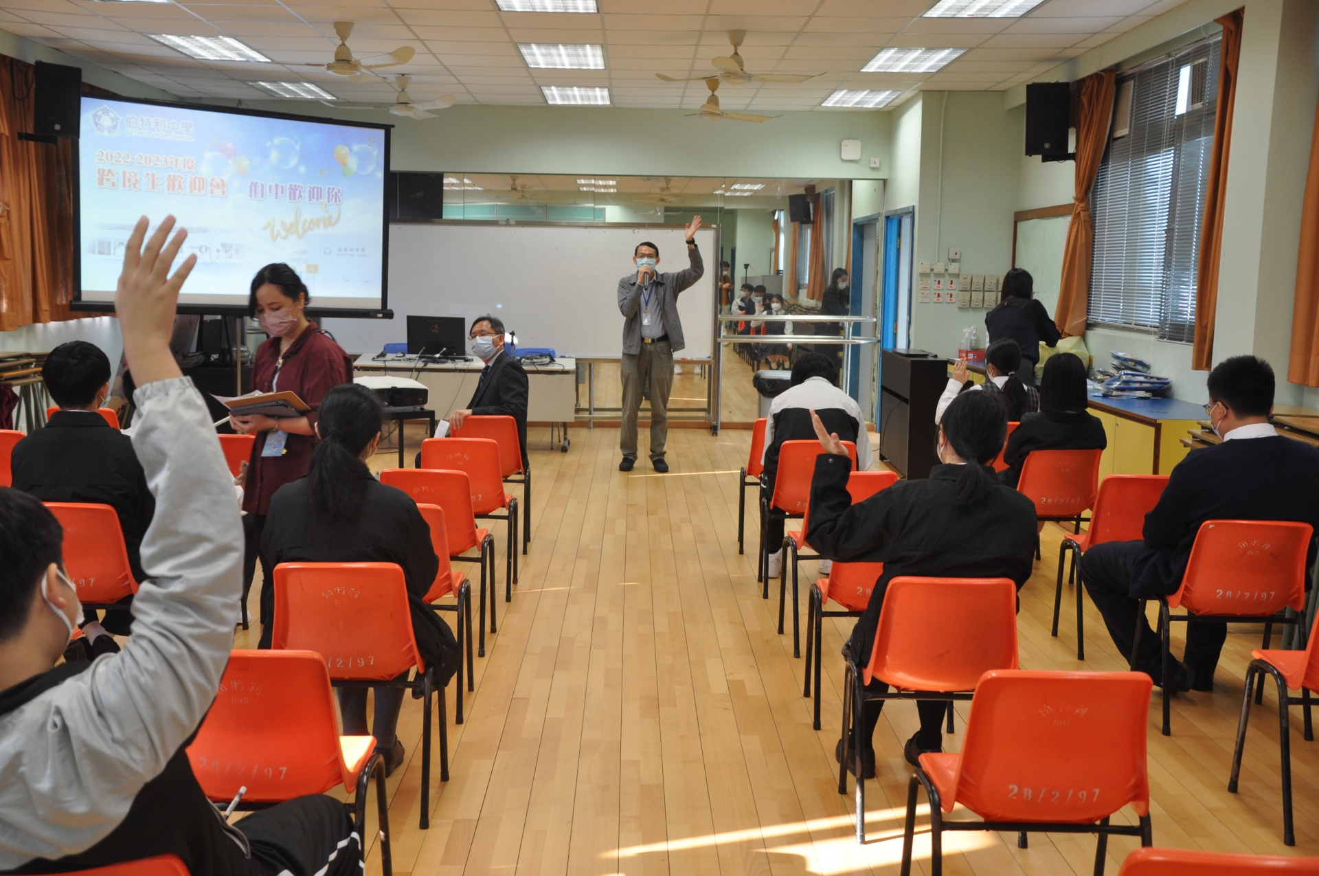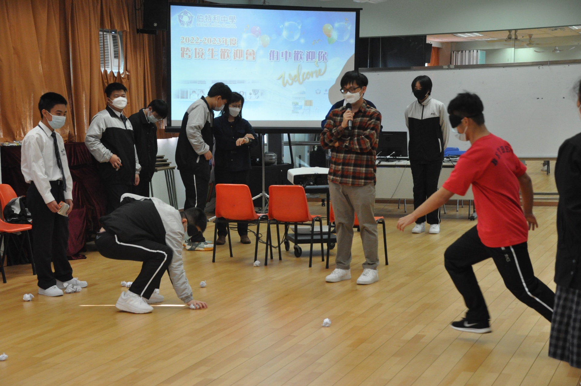 透過不同組別老師的簡介(學生事務組/交通支援組/活動組/訓導組/教務組等)、社工及輔導組老師帶領的遊戲等,期望跨境學生能由幾年的網上學習模式,盡快適應跨境上實體課的學習,和盡情投入校園生活。