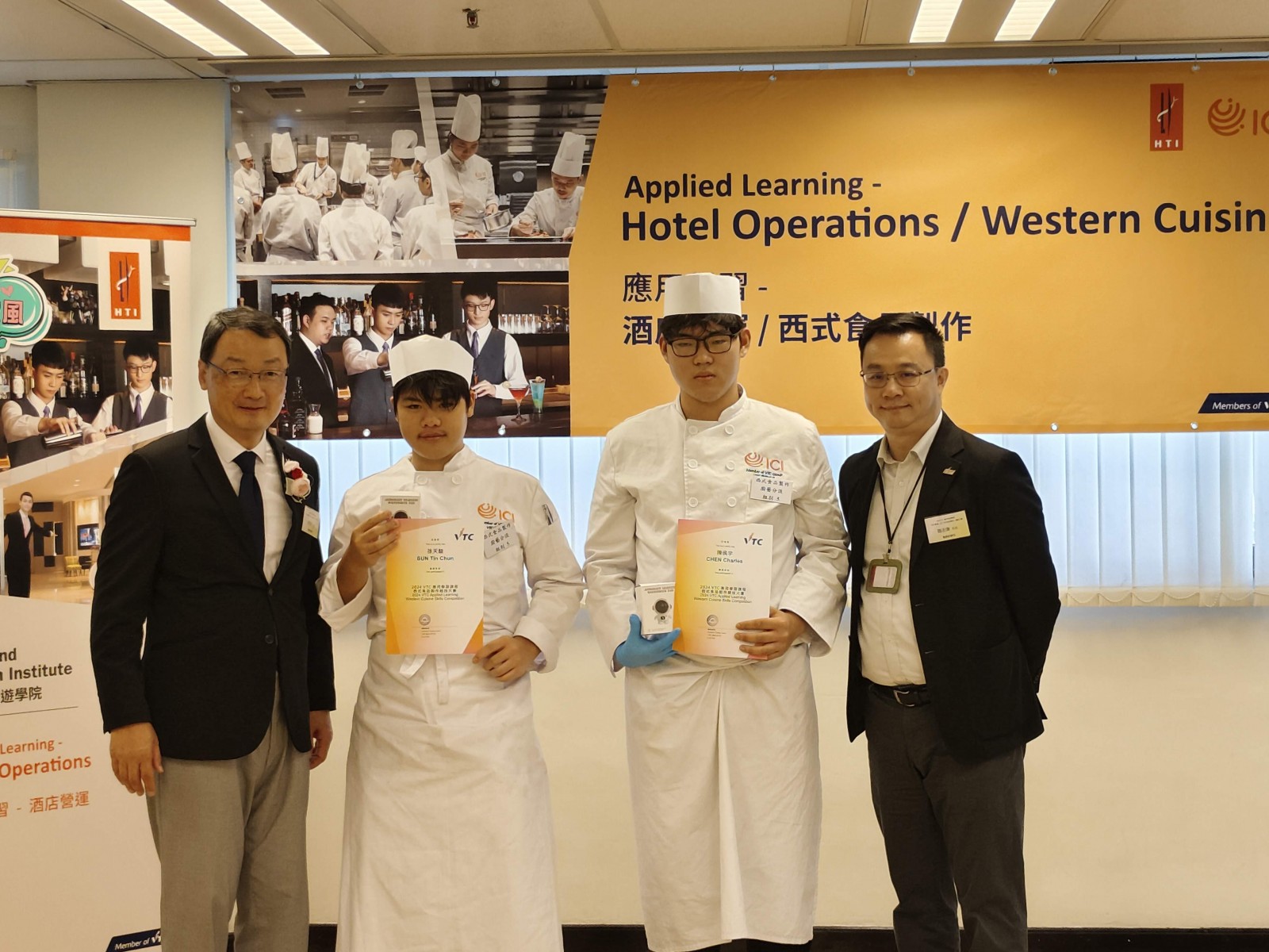 修讀西式食品的學生參加比賽獲得冠軍 Students studying Western Cuisine won the championship in a competition. |