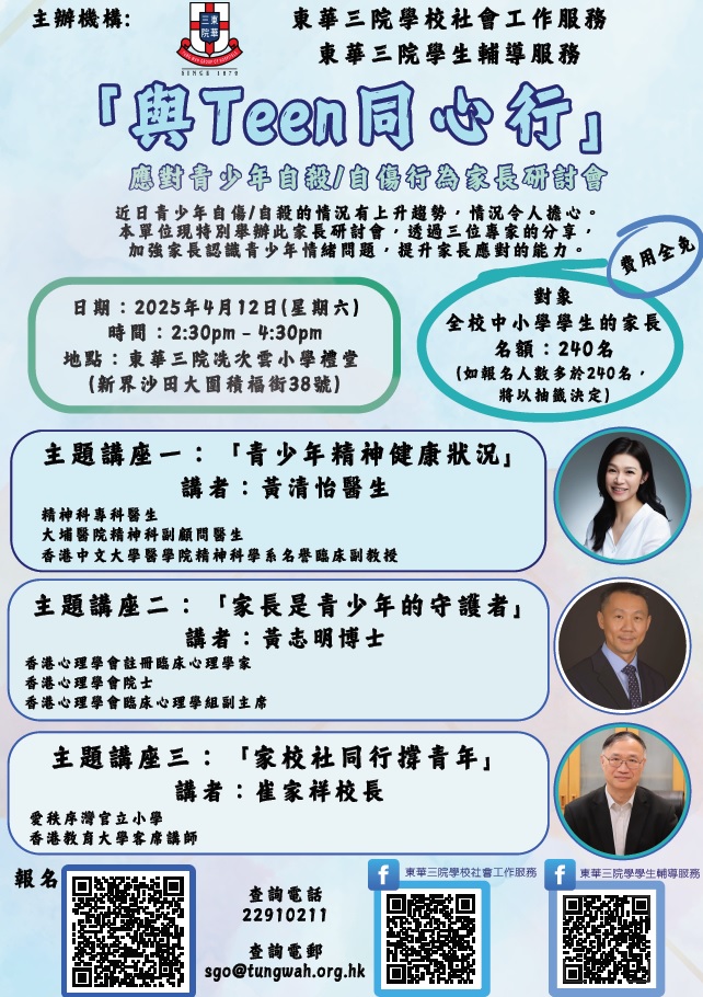 與Teen同心行-應對青少年自殺自傷行為家長研討會
